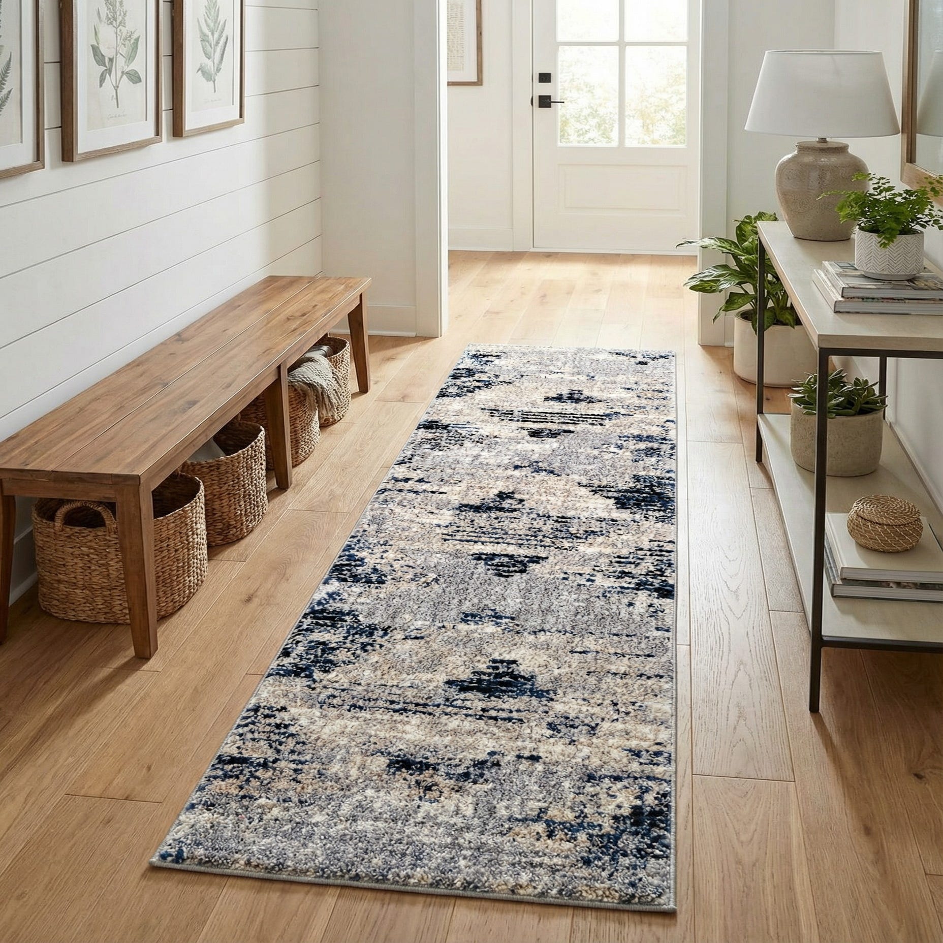 Primary color is Gray. Colors in this rug include: Gray, Beige, Black, Ivory.