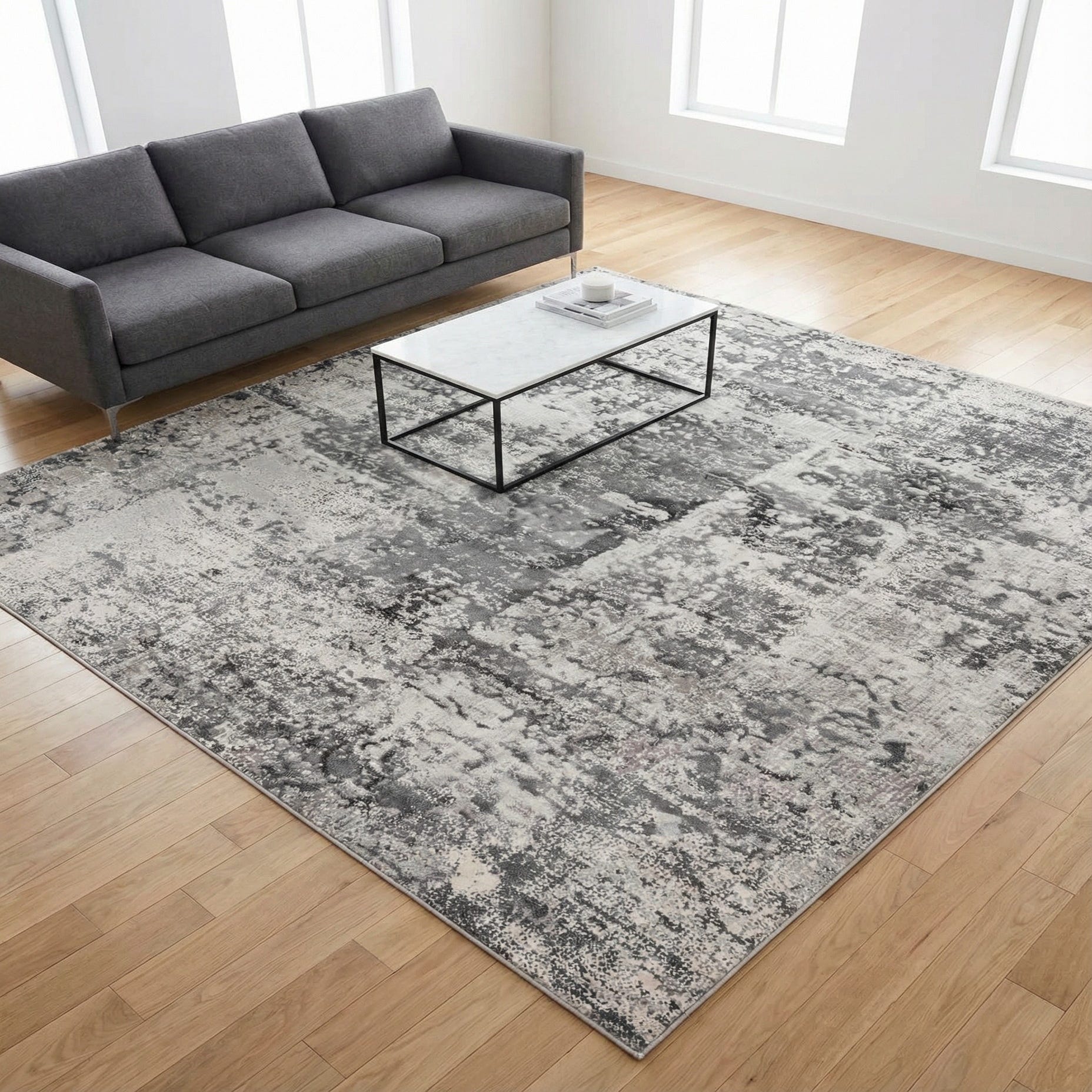 Primary color is Gray. Colors in this rug include: Gray, Beige, Ivory, Light Blue.