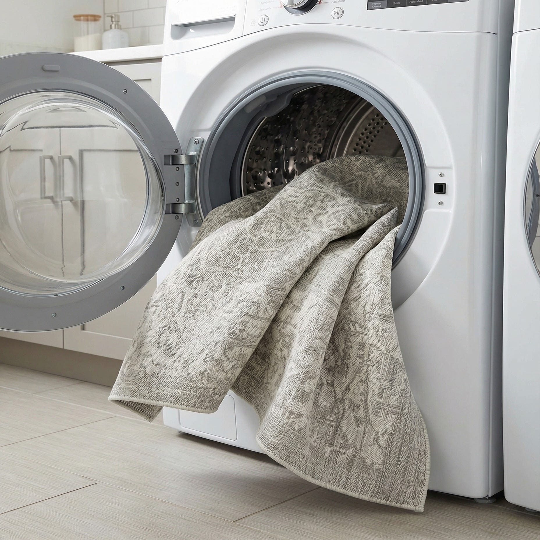 Primary color is Gray. Colors in this rug include: Gray, Ivory.