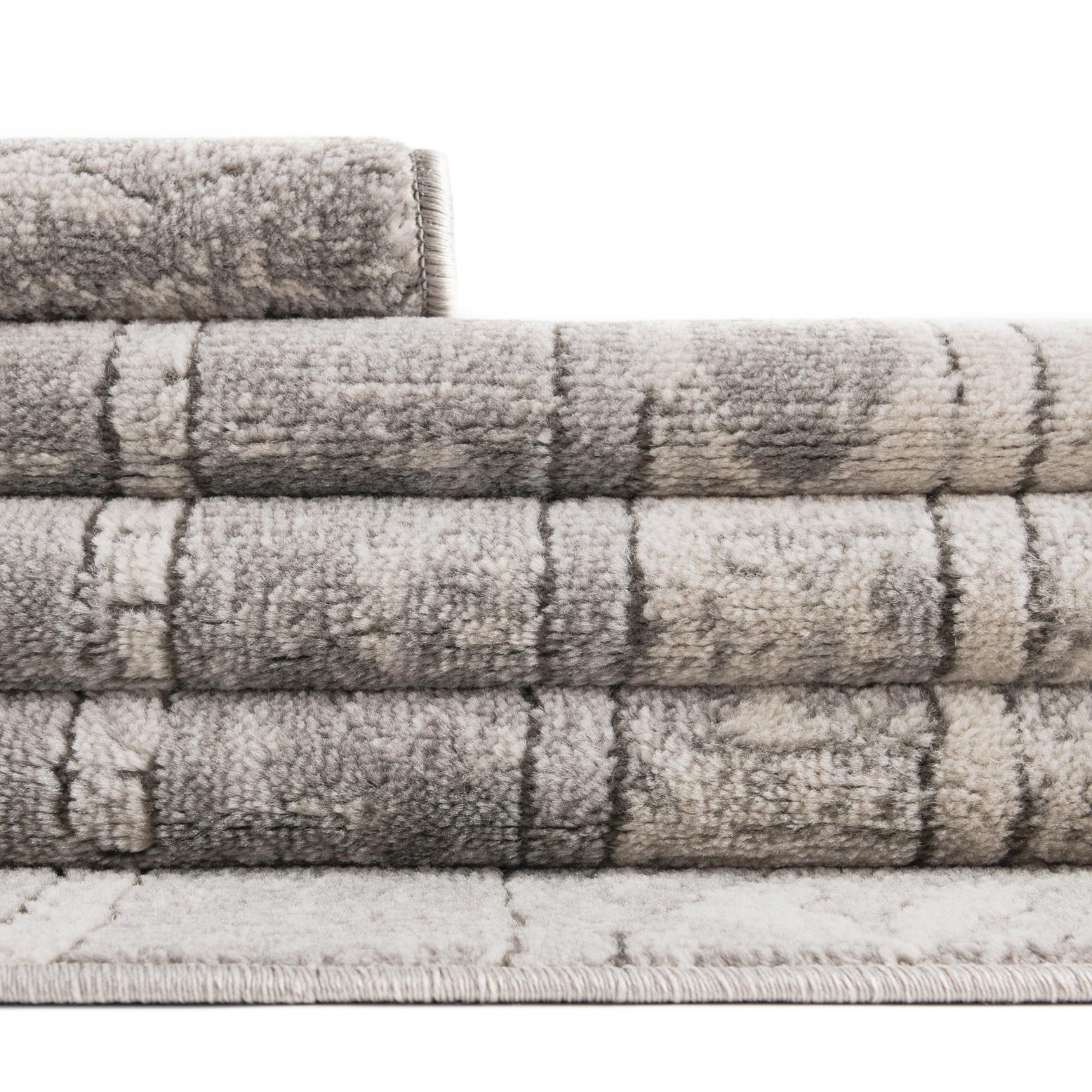 Primary color is Gray. Colors in this rug include: Gray, Beige, Cream.
