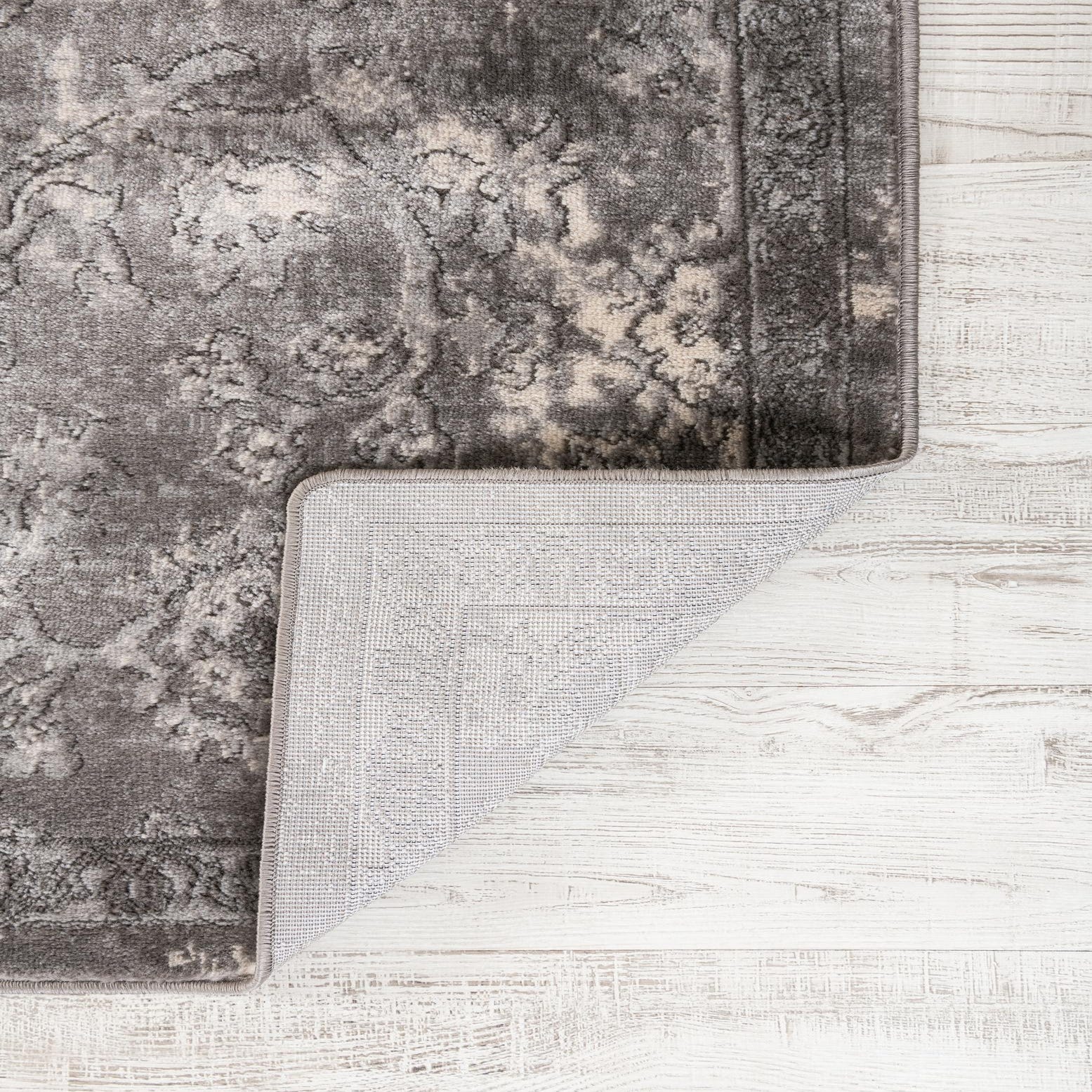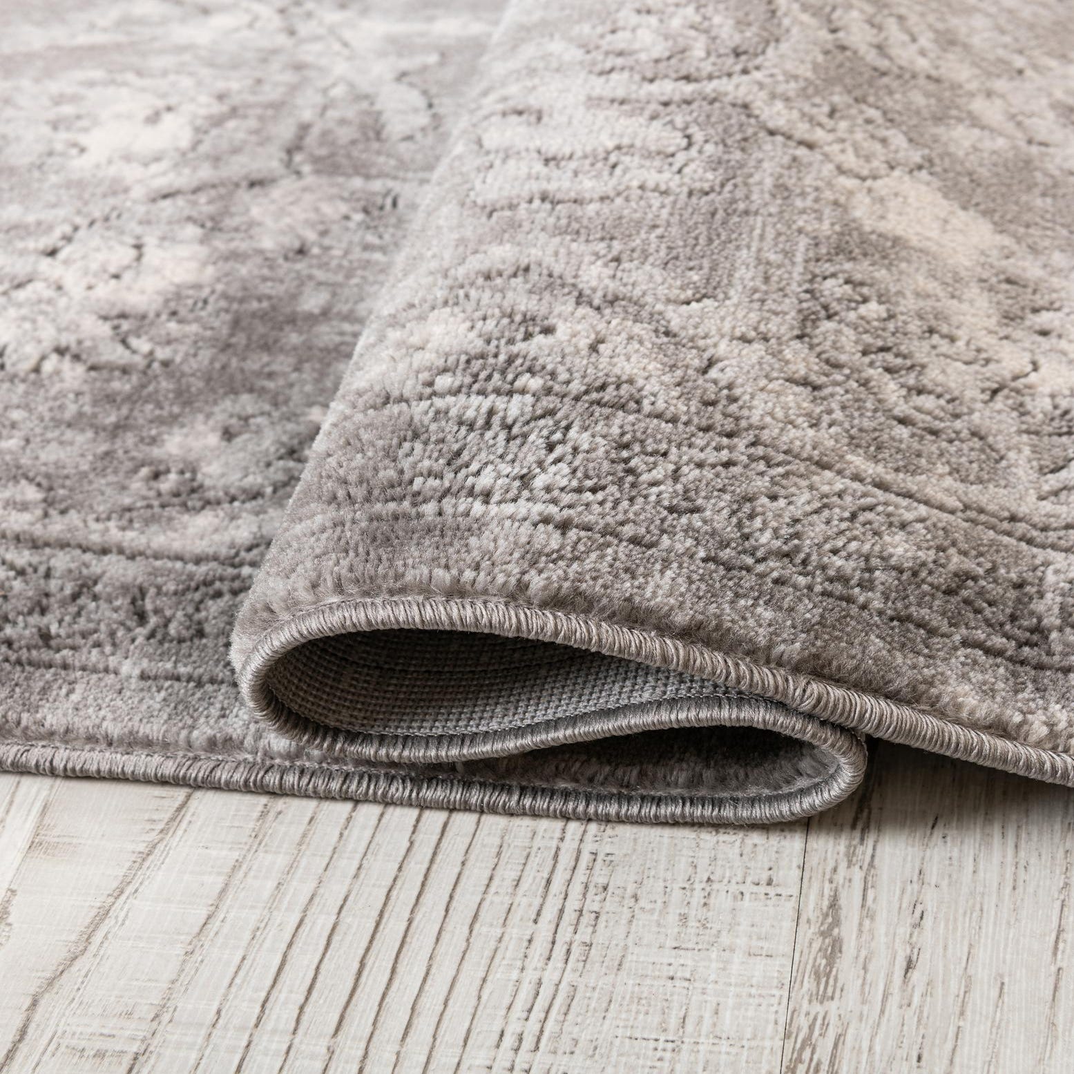 Primary color is Gray. Colors in this rug include: Gray, Ivory.