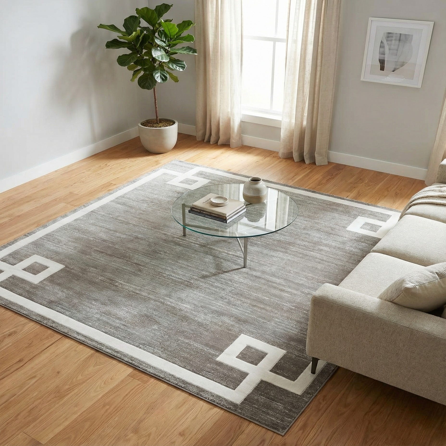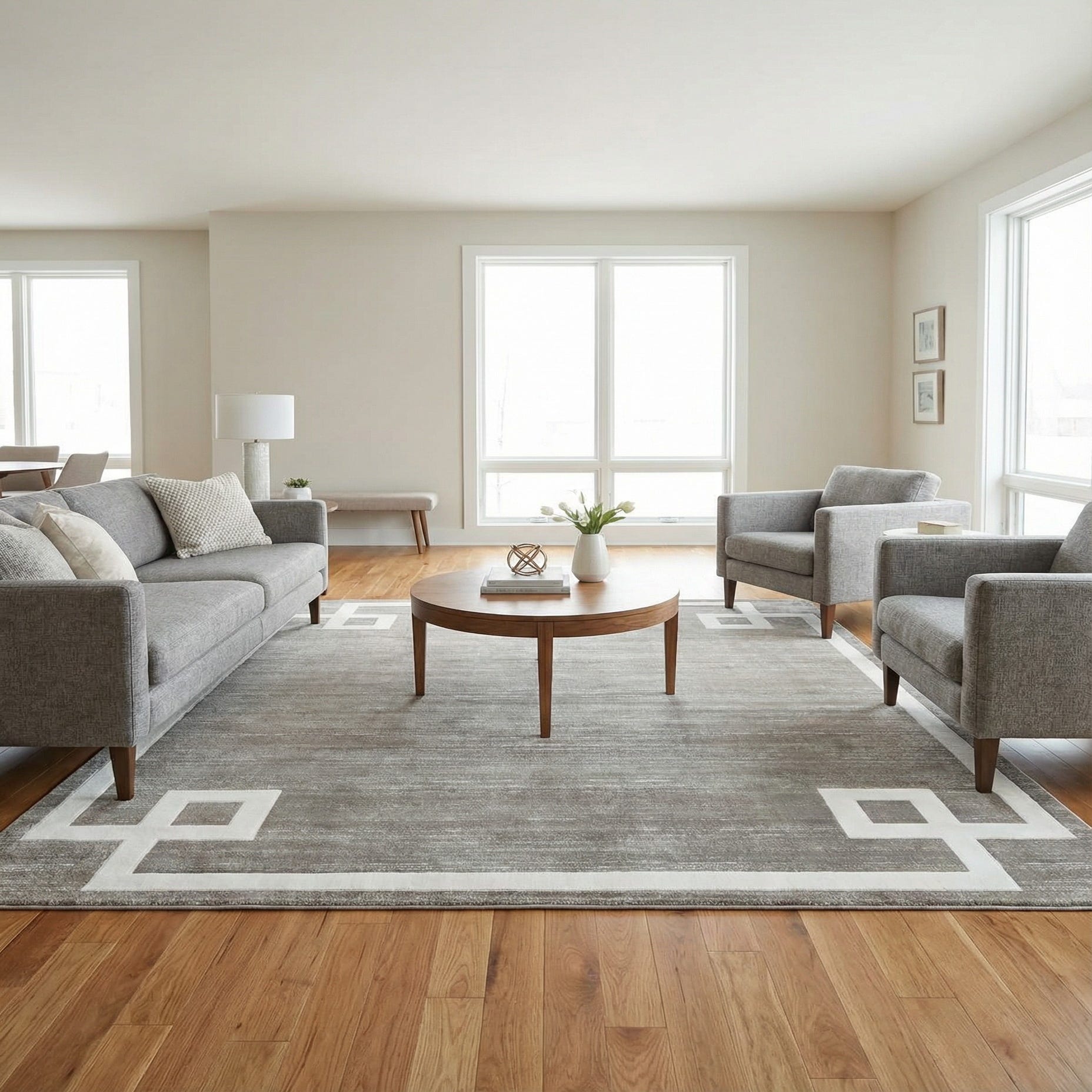 Primary color is Gray. Colors in this rug include: Gray, Ivory.