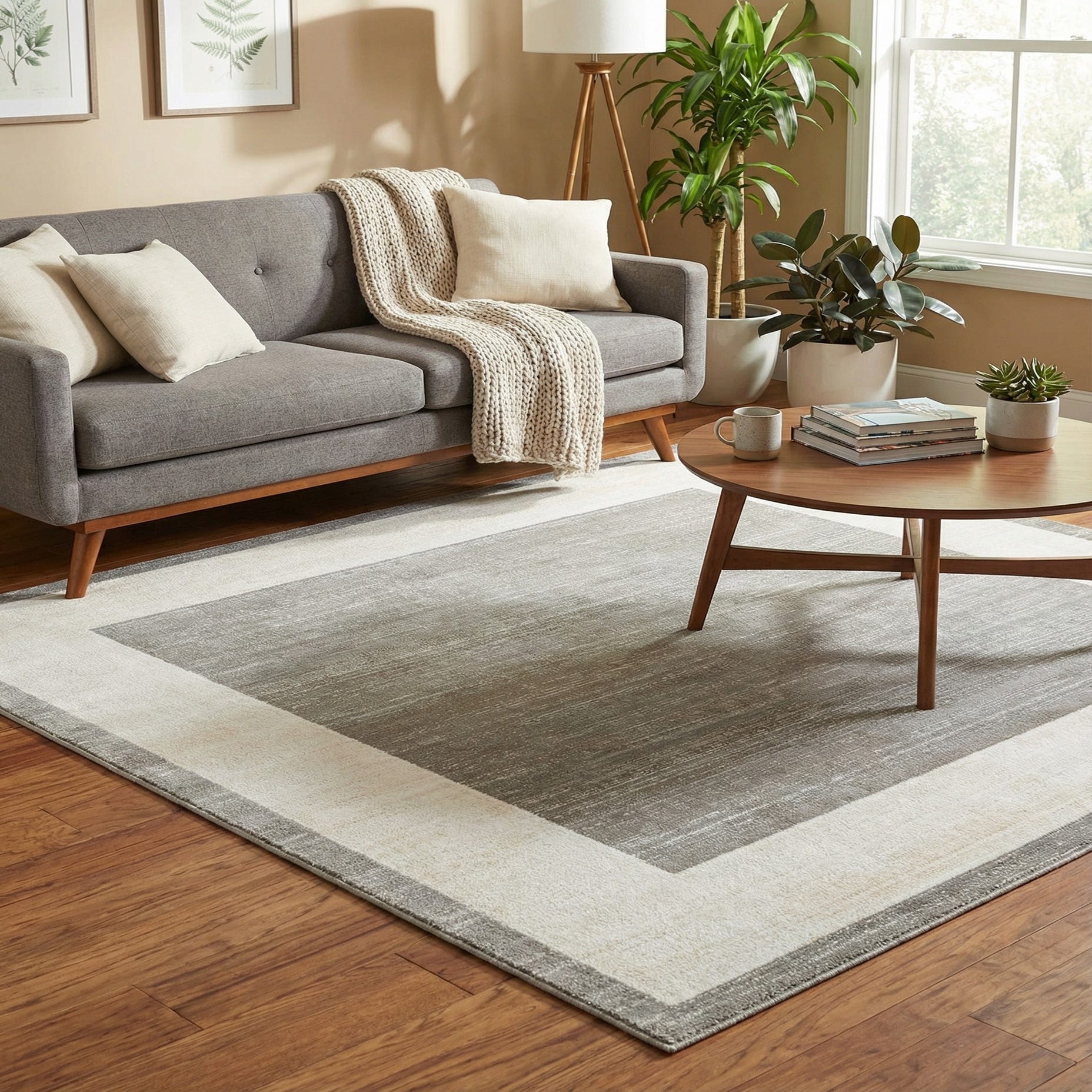Primary color is Gray. Colors in this rug include: Gray, Ivory, Beige.