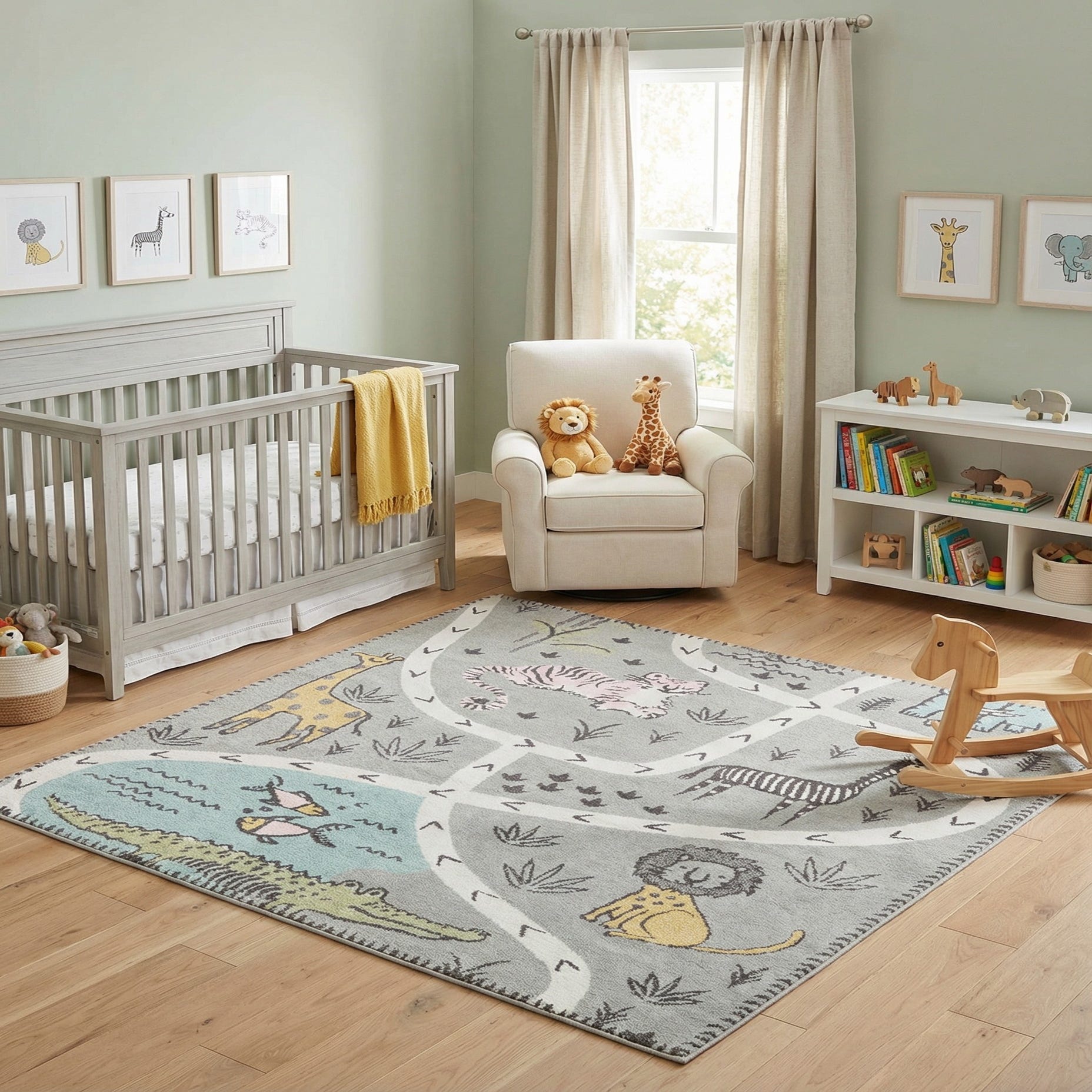 7' 10 x 7' 10 Animals Whimsy Kids Square Rug