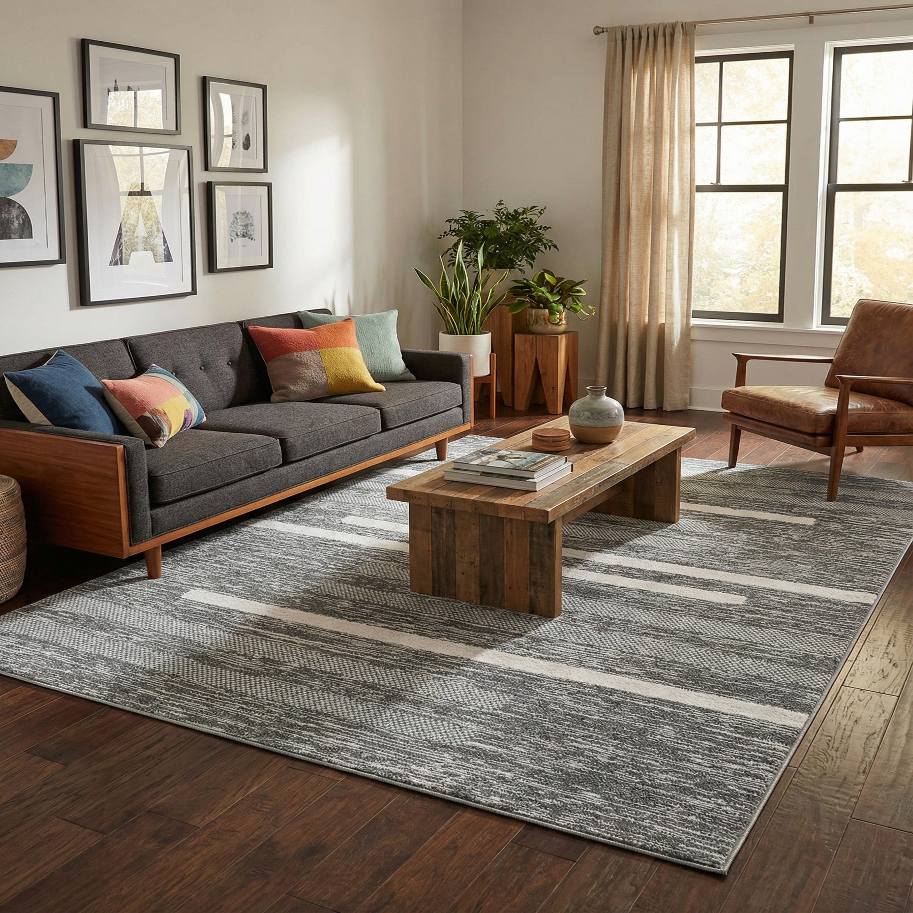 Primary color is Gray. Colors in this rug include: Gray, Ivory.