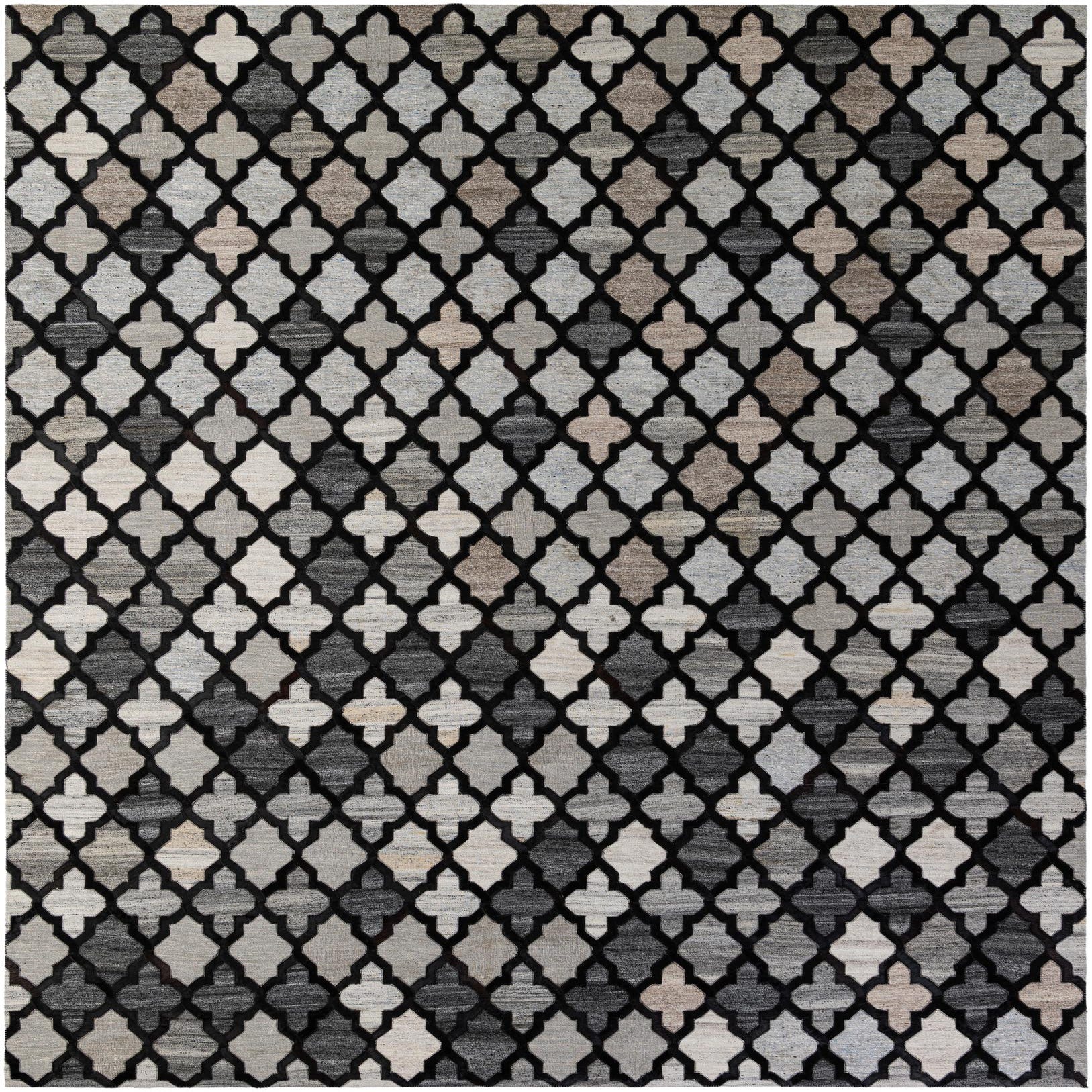 Primary color is Gray. Colors in this rug include: Gray, Black, Ivory.