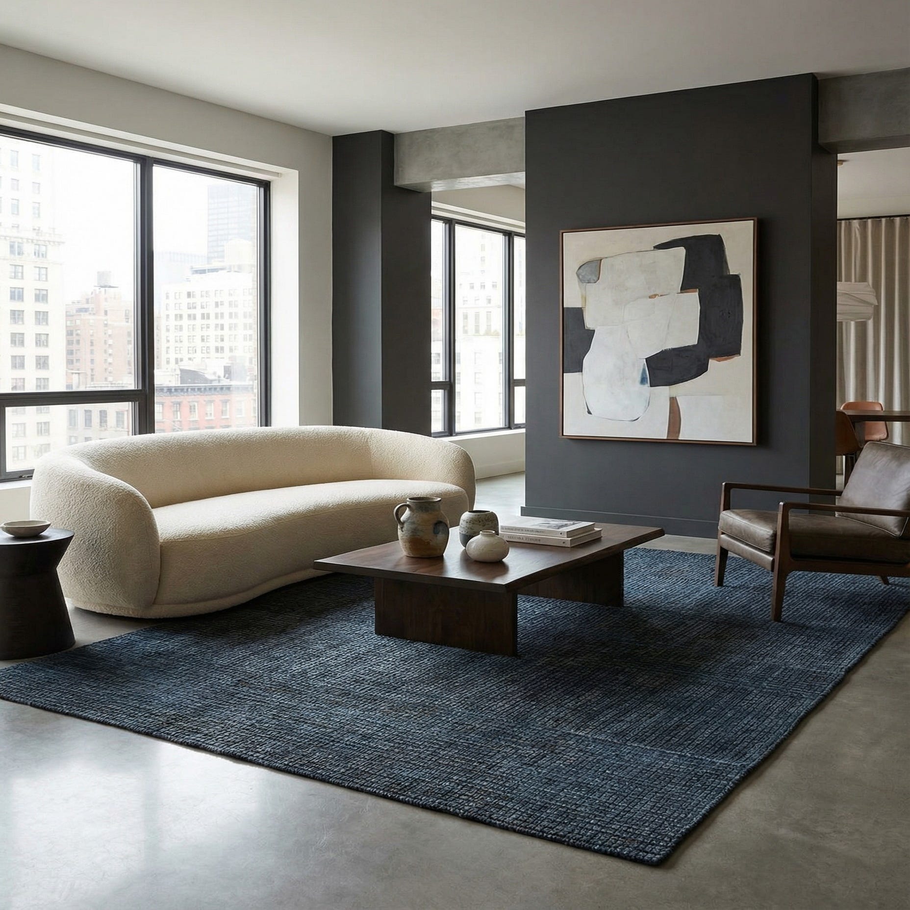 Primary color is Gray. Colors in this rug include: Gray, Black, Blue.
