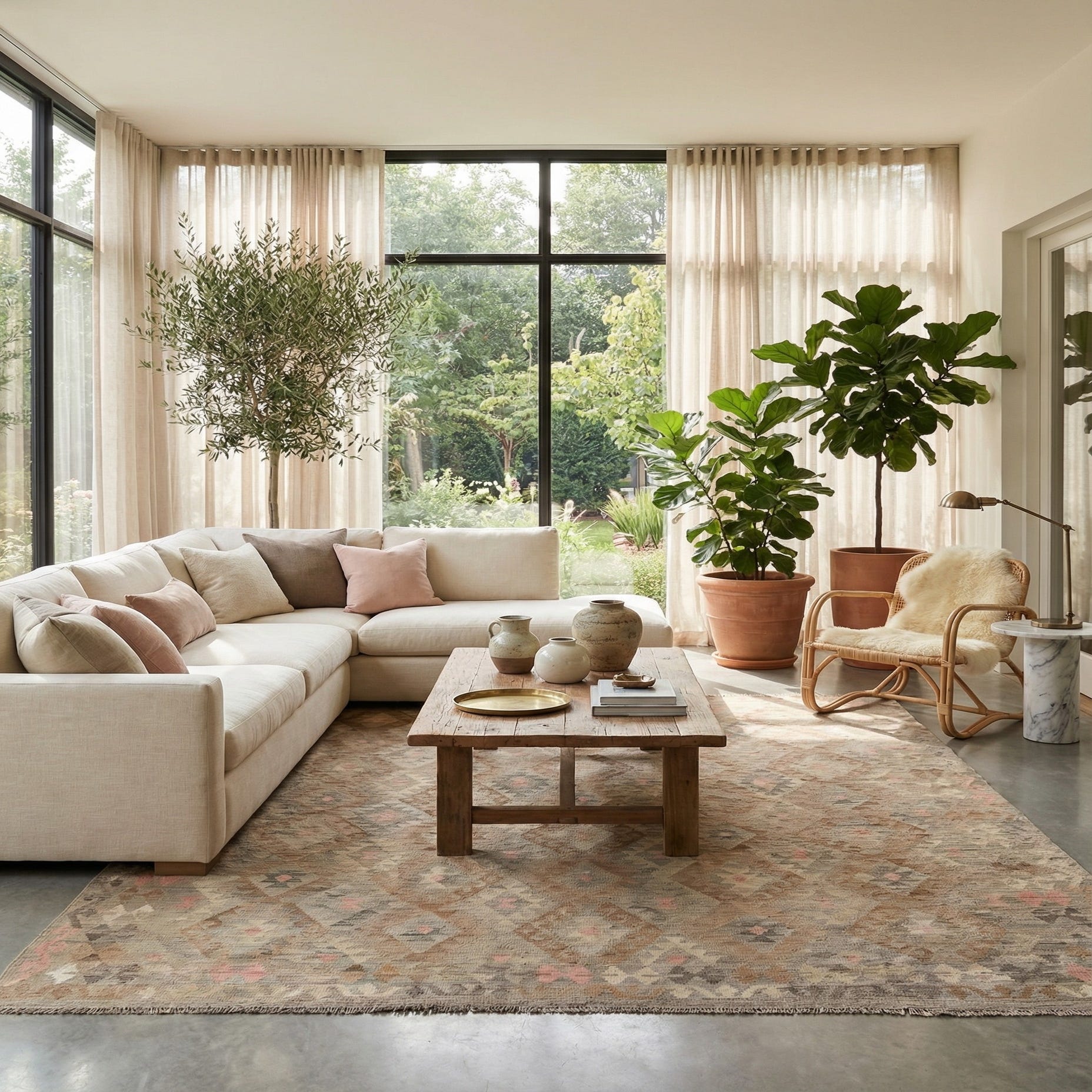 8' 4 x 9' 5 Hand Woven Kilim Maymana Wool Rug