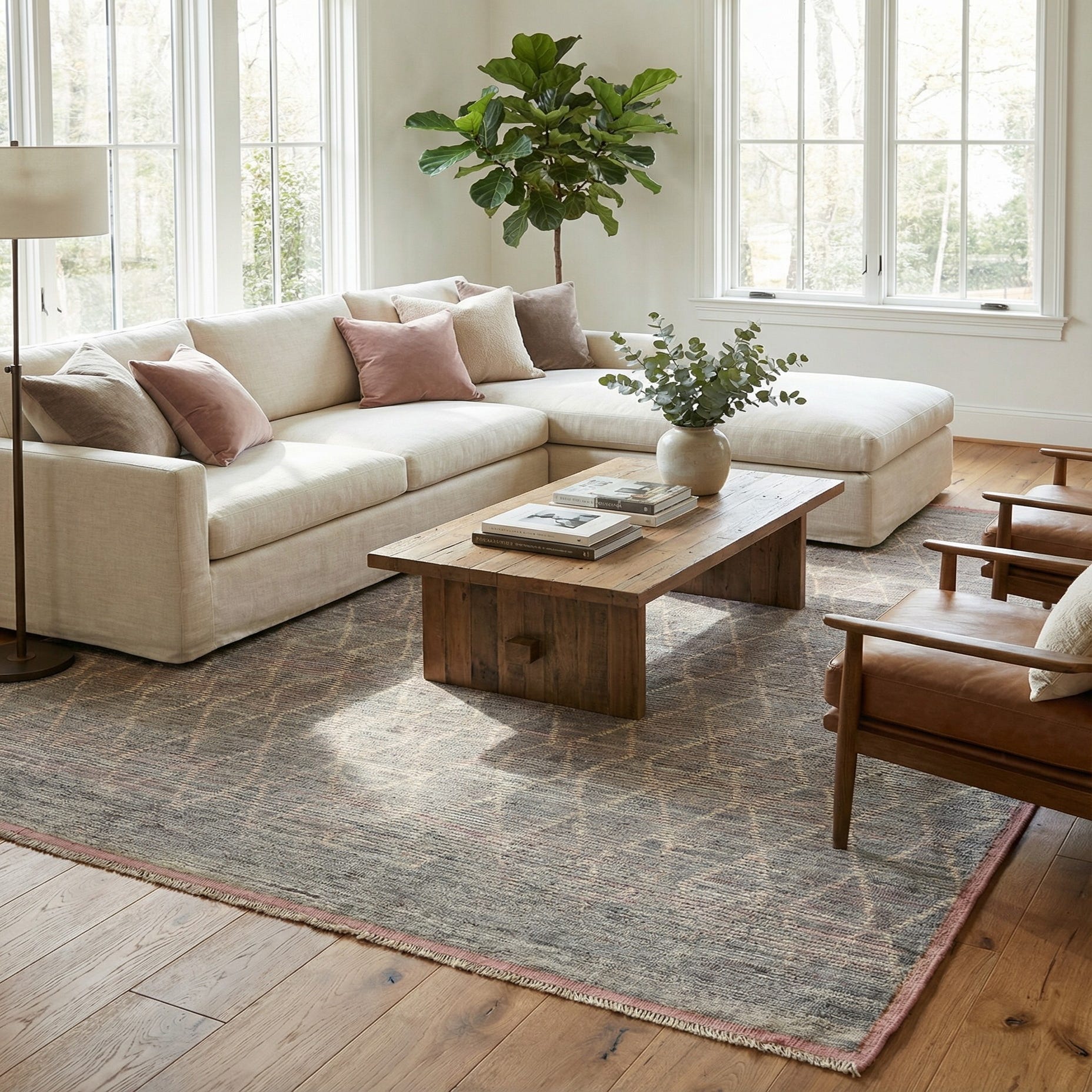 Primary color is Gray. Colors in this rug include: Gray, Brown, Pink, Ivory.