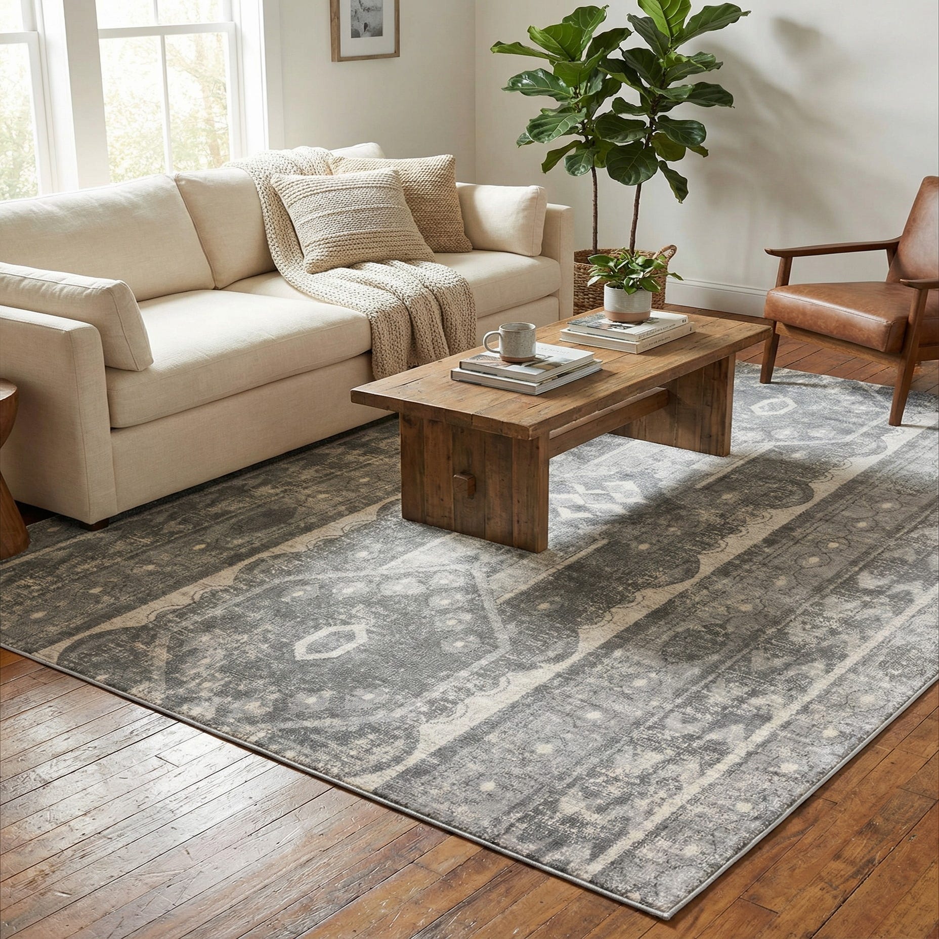 Primary color is Gray. Colors in this rug include: Gray, Ivory.