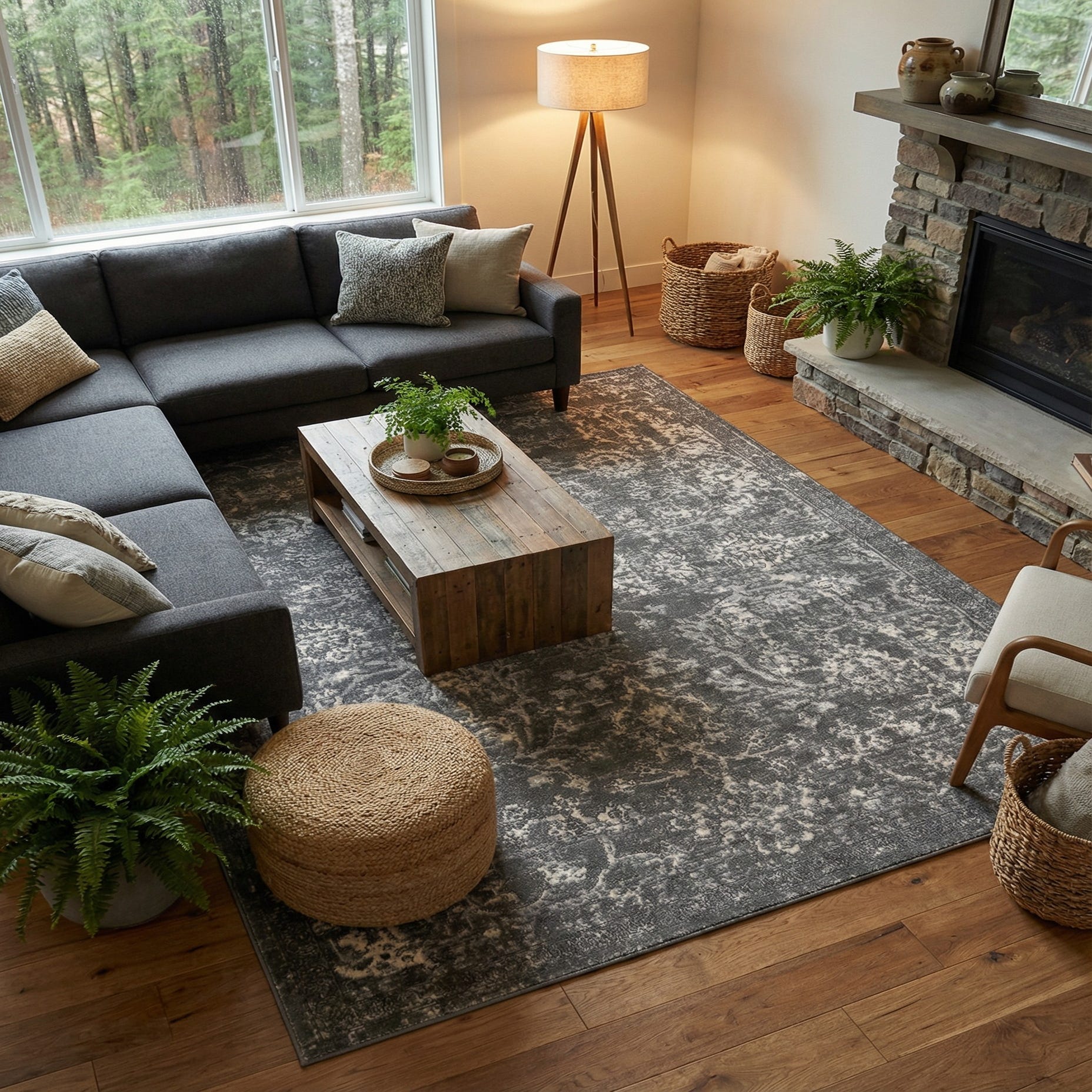 Primary color is Gray. Colors in this rug include: Gray, Ivory.