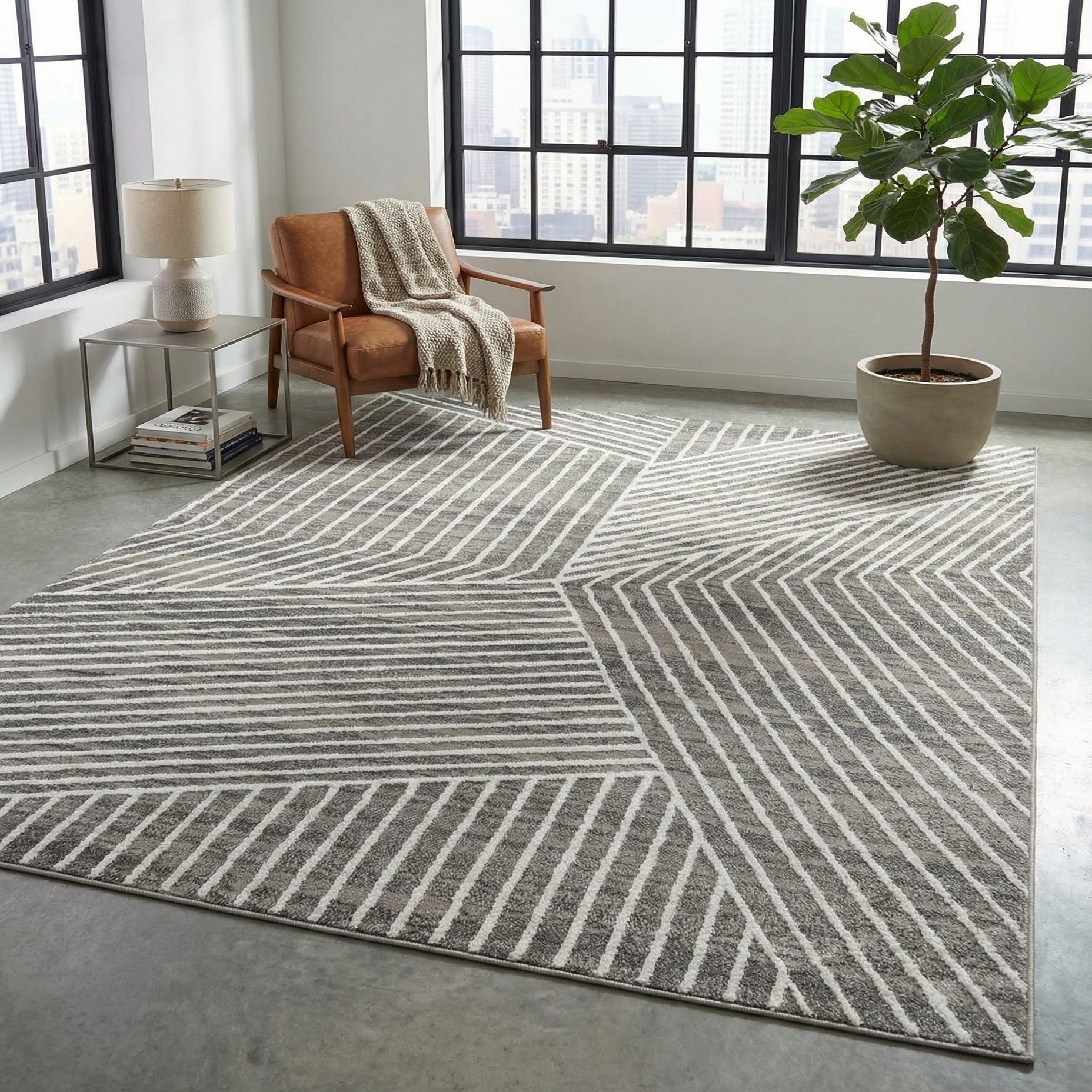 Primary color is Gray. Colors in this rug include: Gray, Ivory.