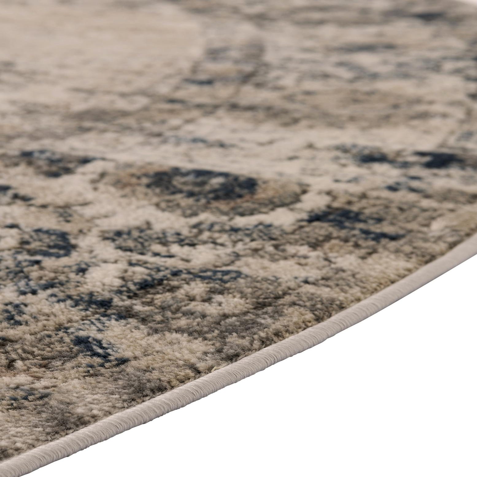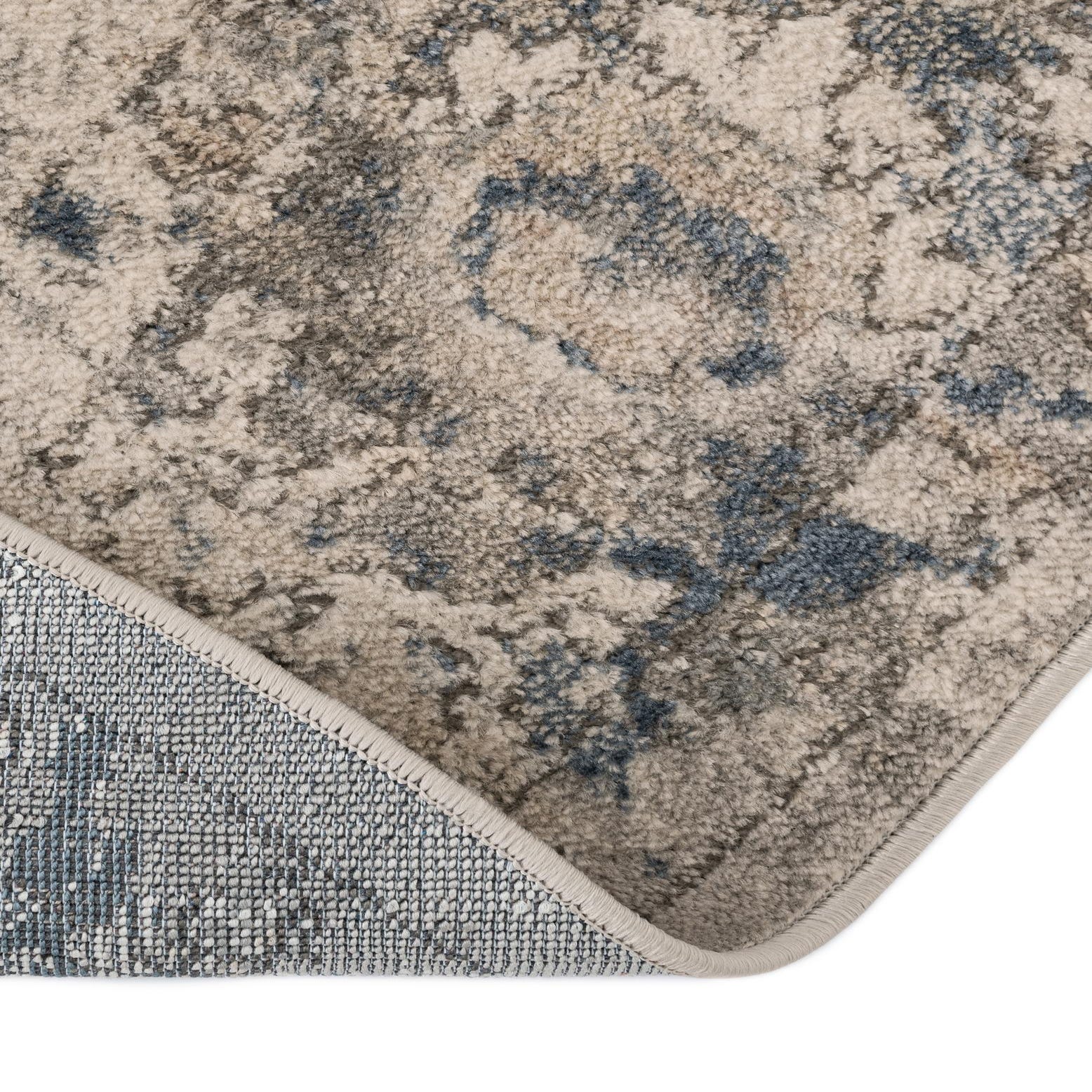 Primary color is Gray. Colors in this rug include: Gray, Beige, Blue.