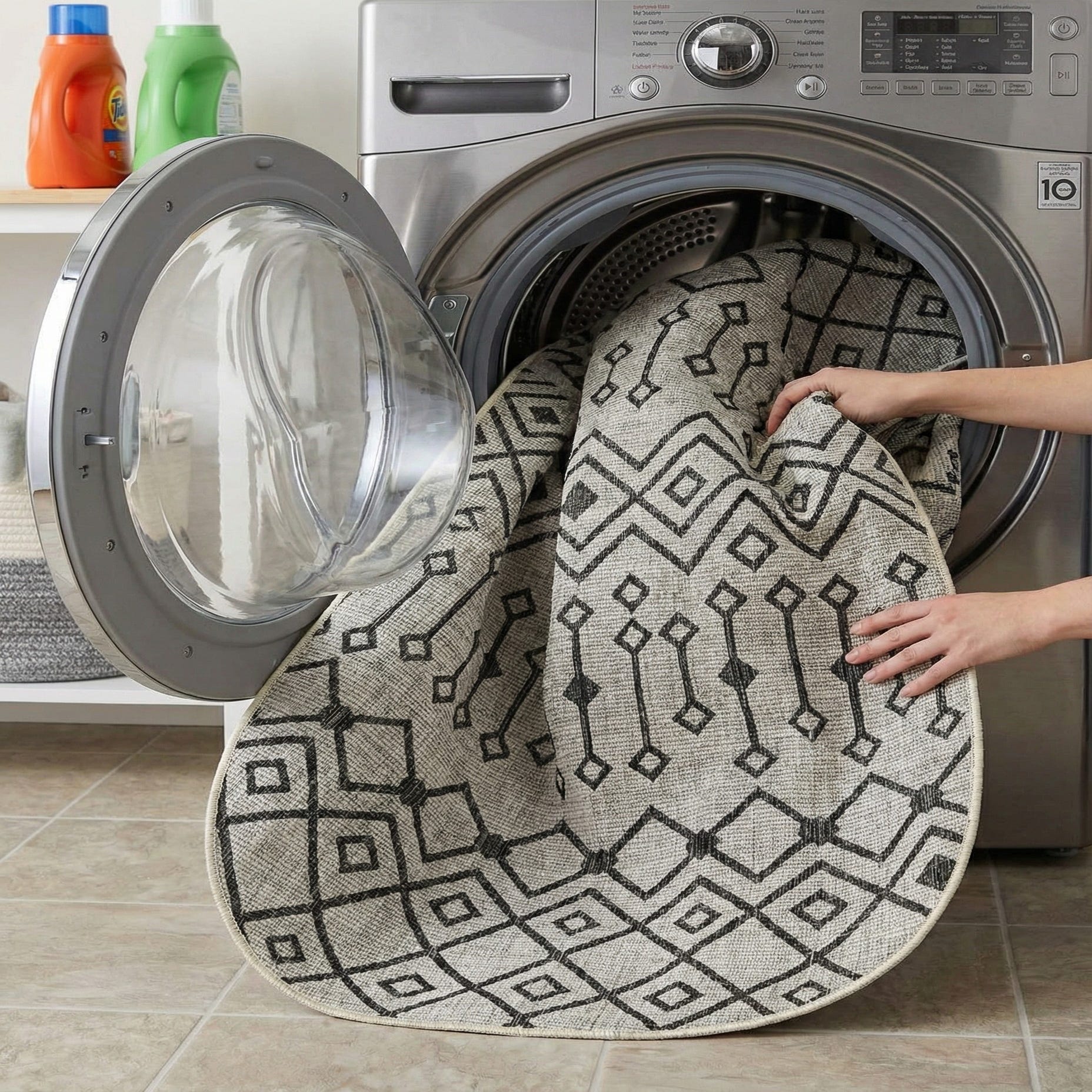 Primary image 7' 10 x 10'  Washable Trellis Indoor / Outdoor Oval Rug
