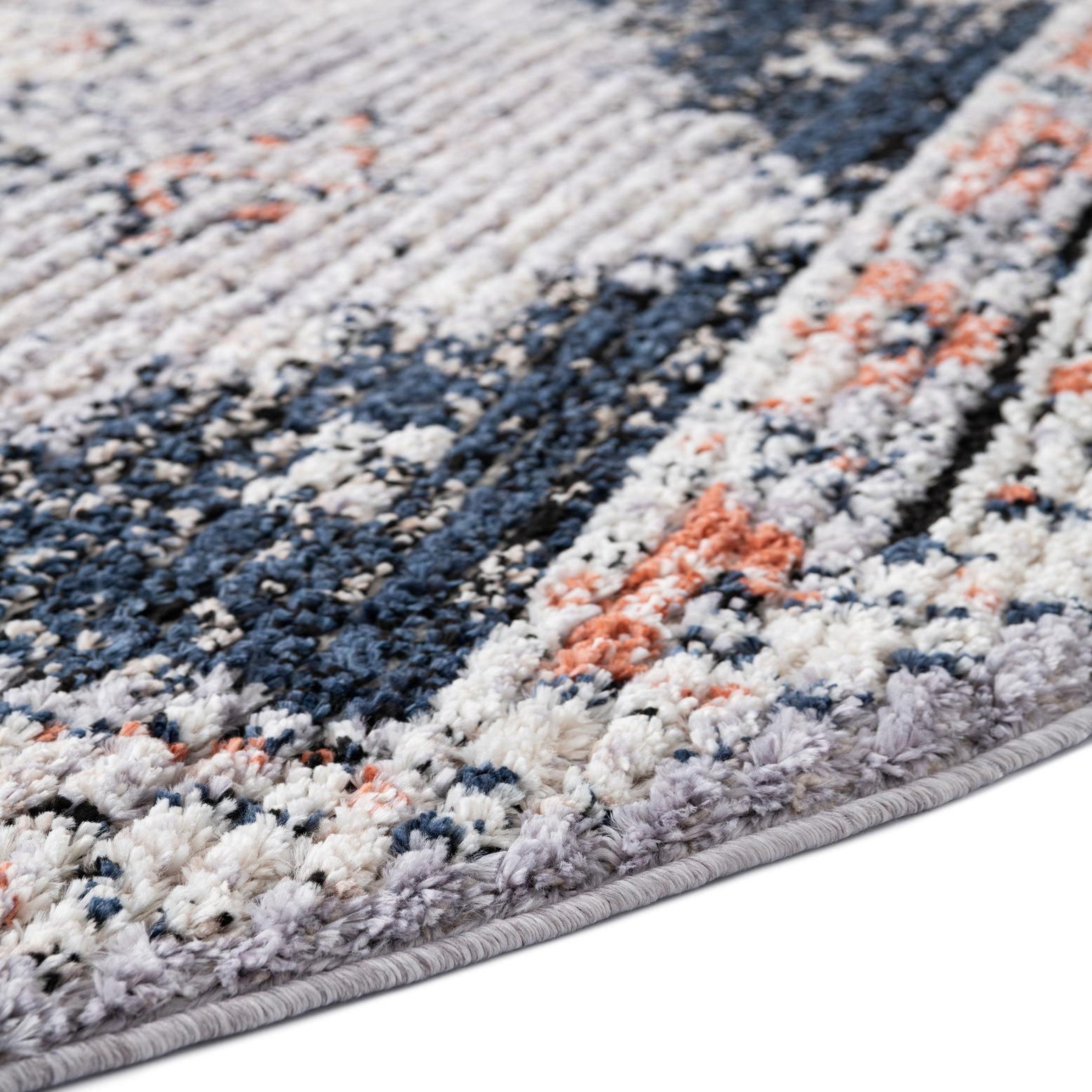 Primary color is Gray. Colors in this rug include: Gray, Beige, Black, Ivory, Blue.