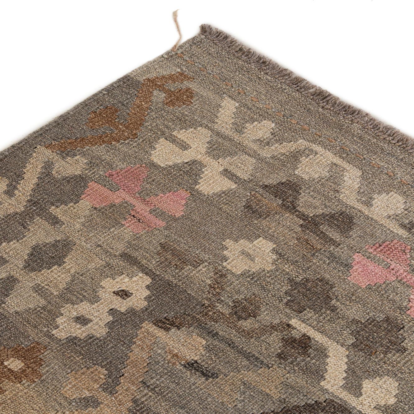 Primary color is Gray. Colors in this rug include: Gray, Beige, Brown, Pink, Light Brown.