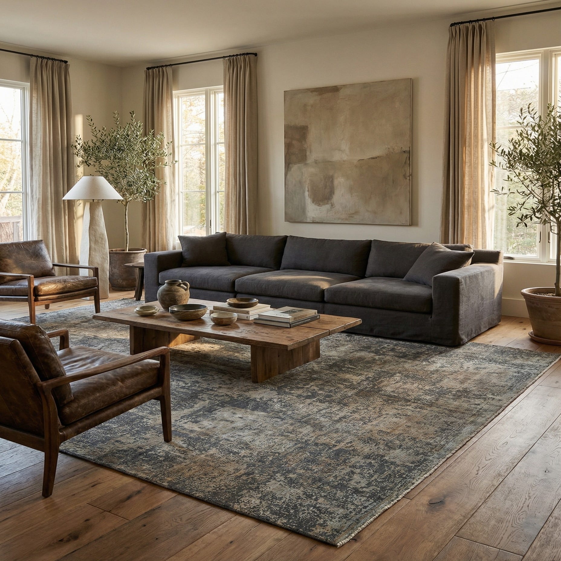 Primary color is Gray. Colors in this rug include: Gray, Brown, Beige.