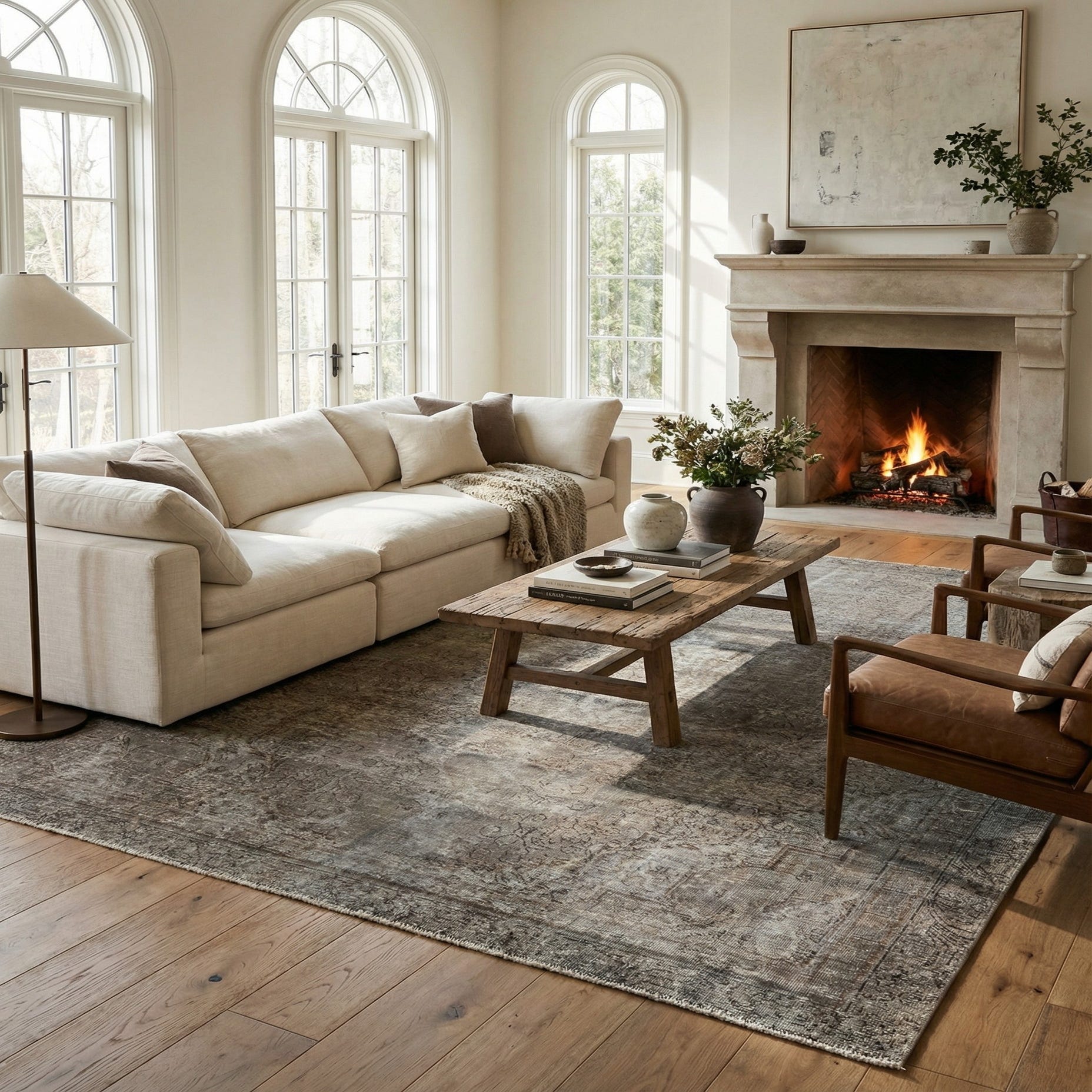 Primary color is Gray. Colors in this rug include: Gray, Brown, Light Brown.