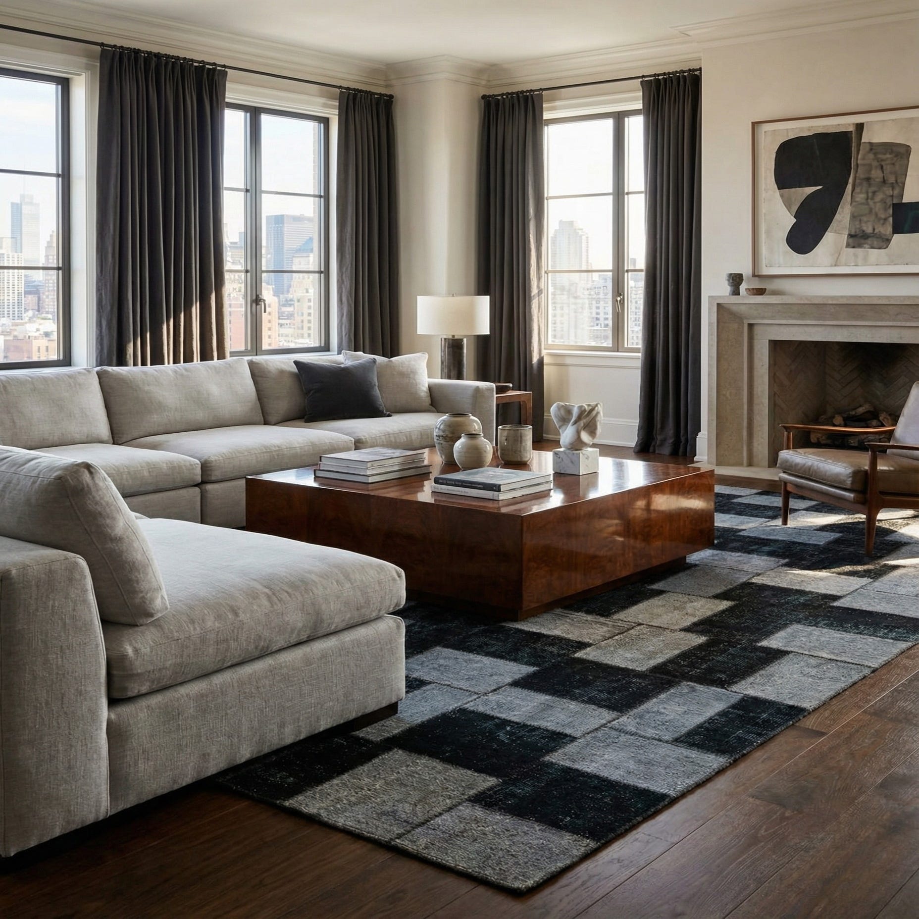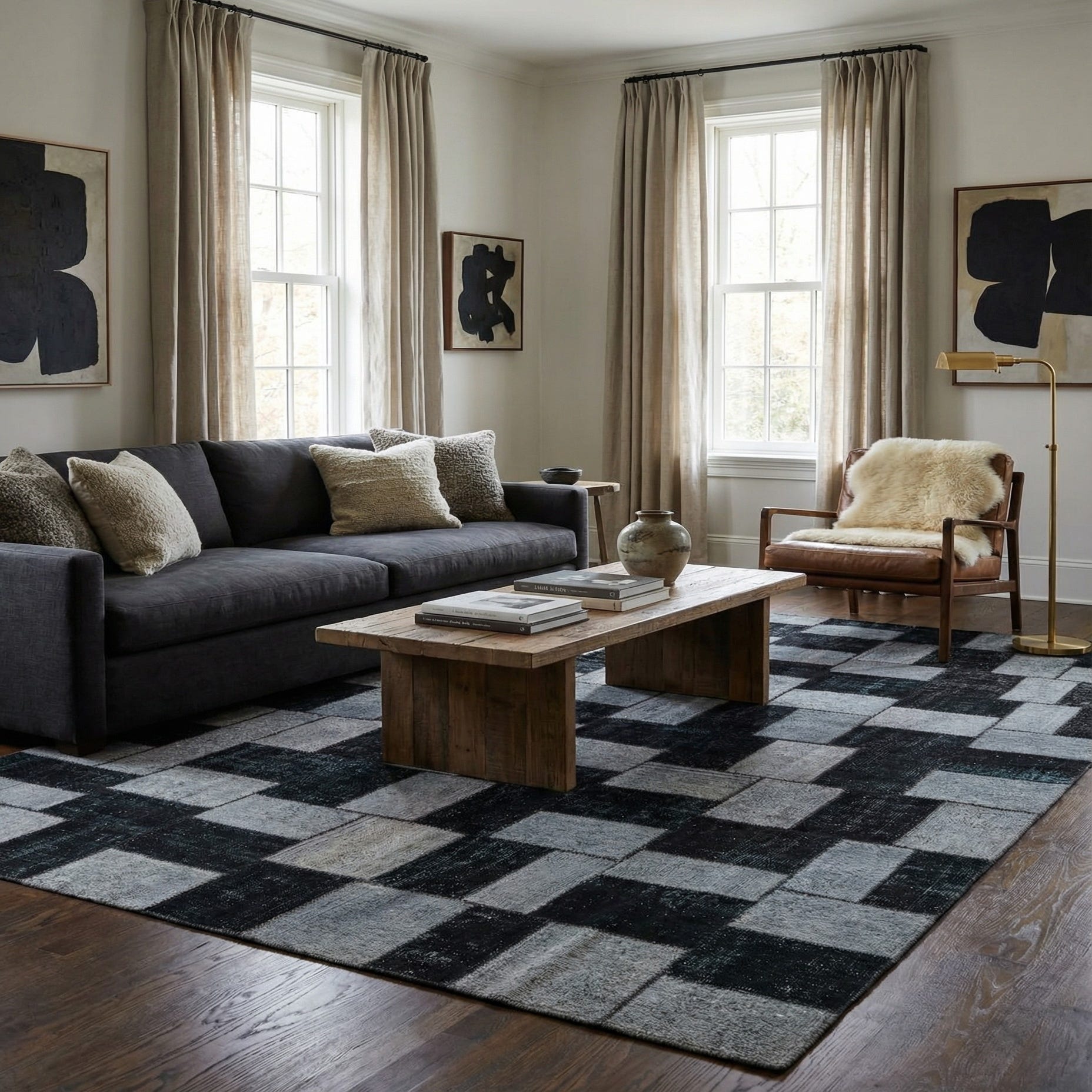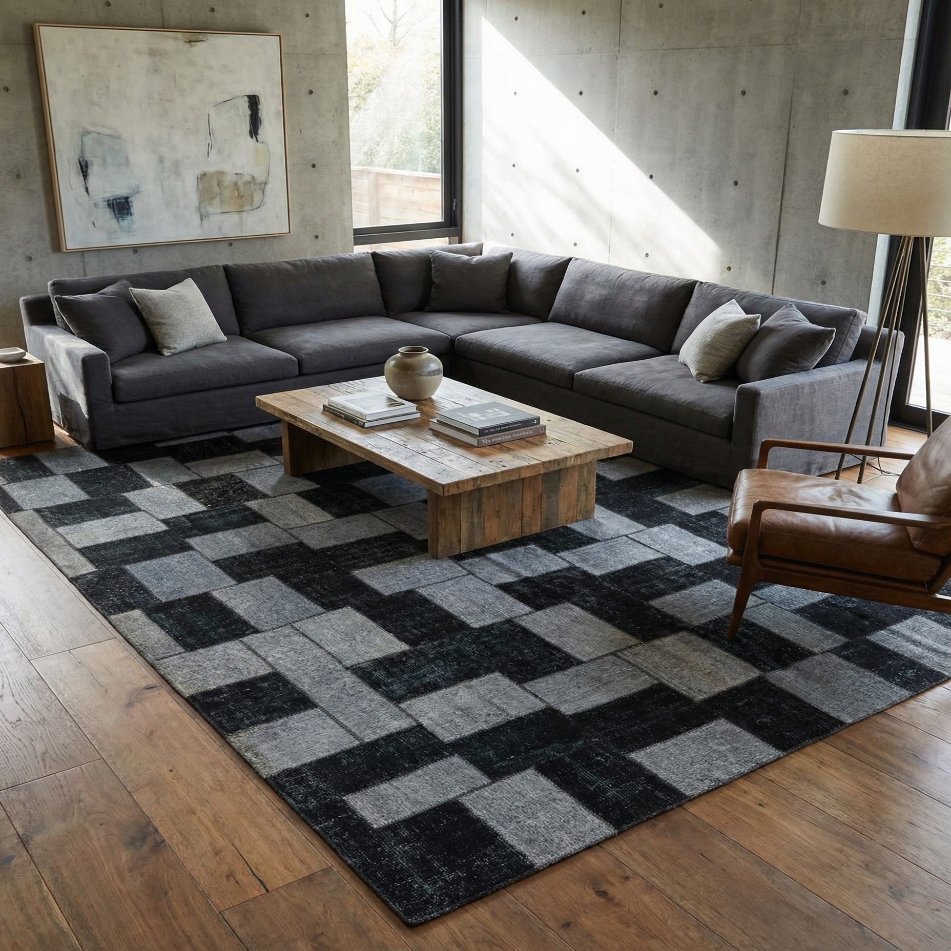 Primary color is Gray. Colors in this rug include: Gray, Black.