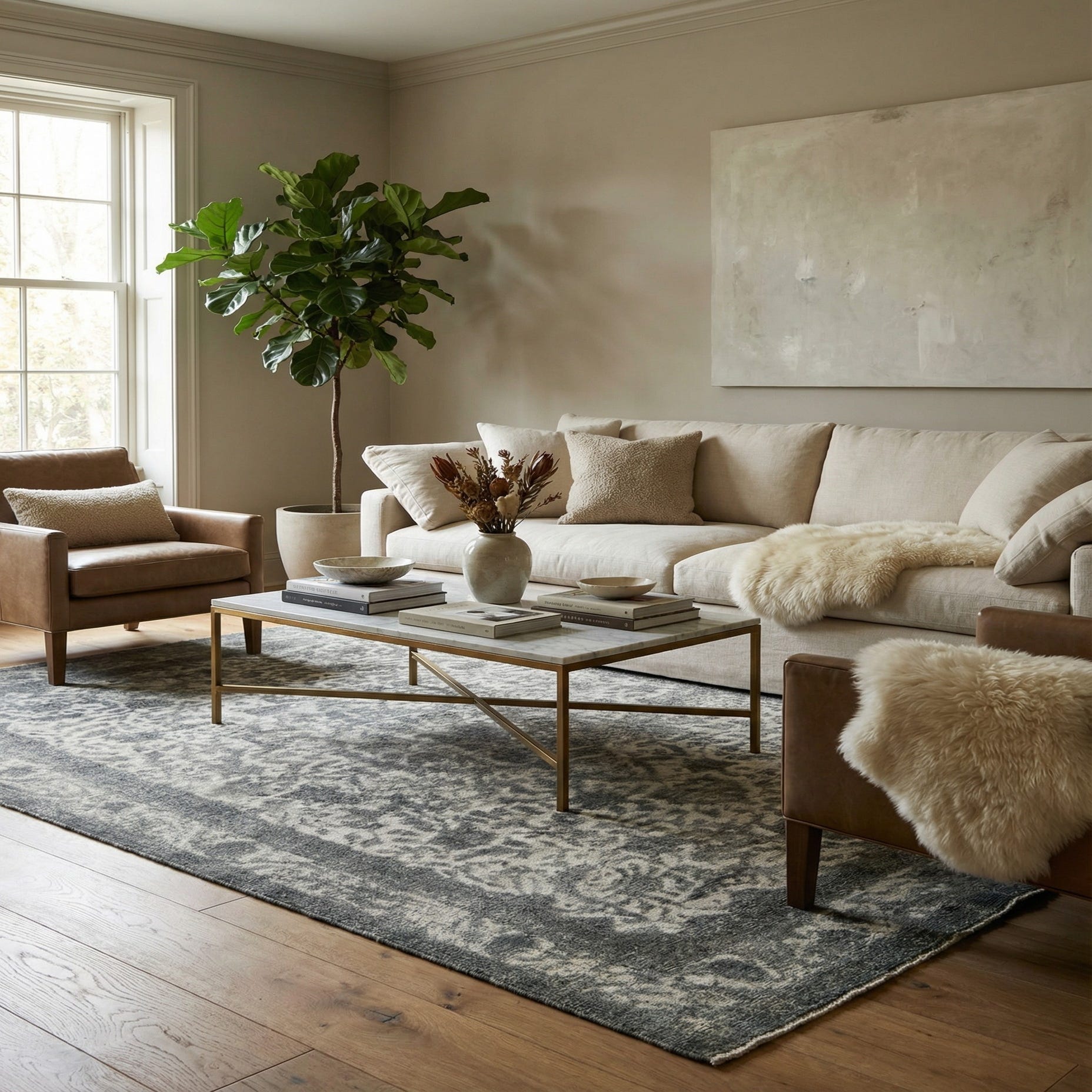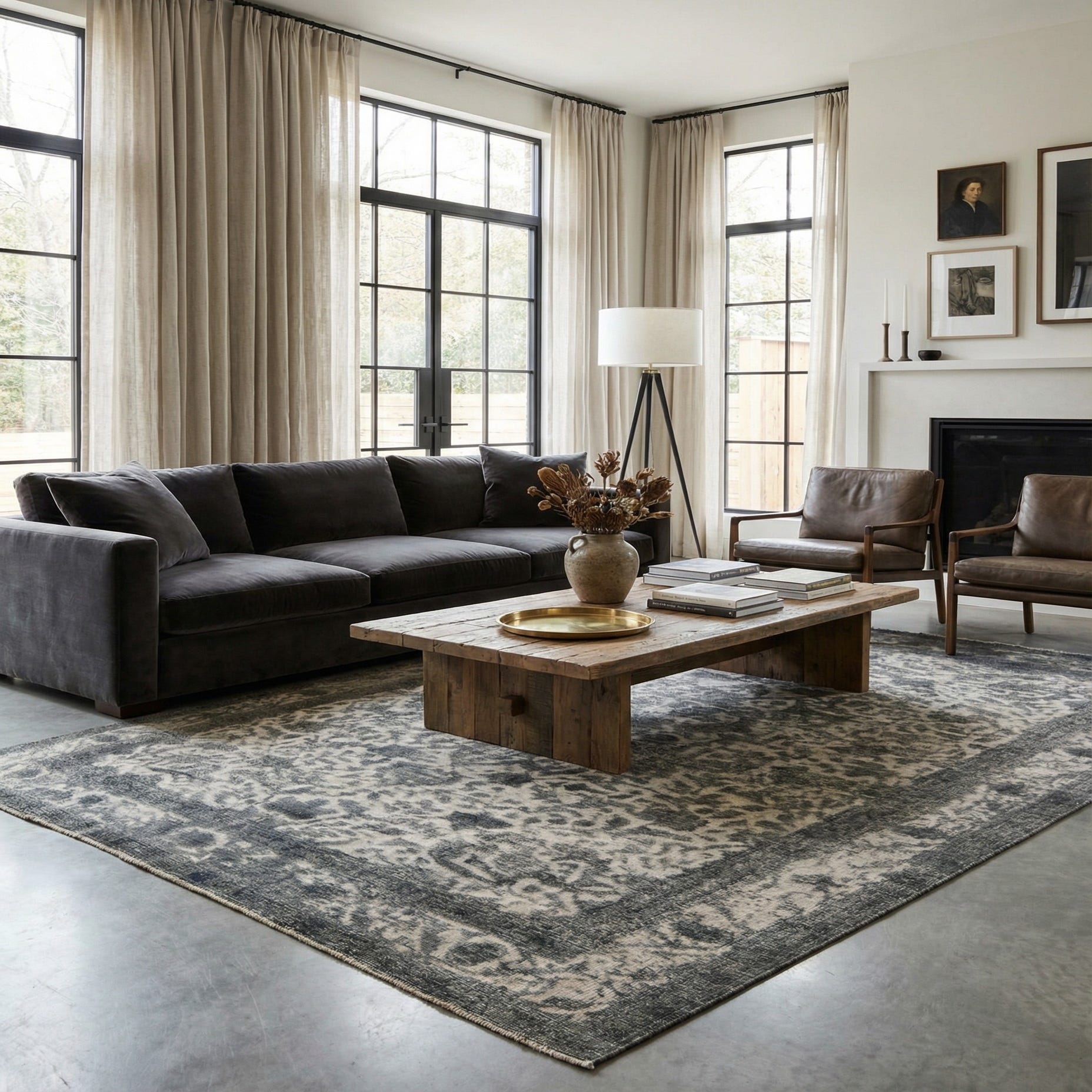 Primary color is Gray. Colors in this rug include: Gray, Ivory.
