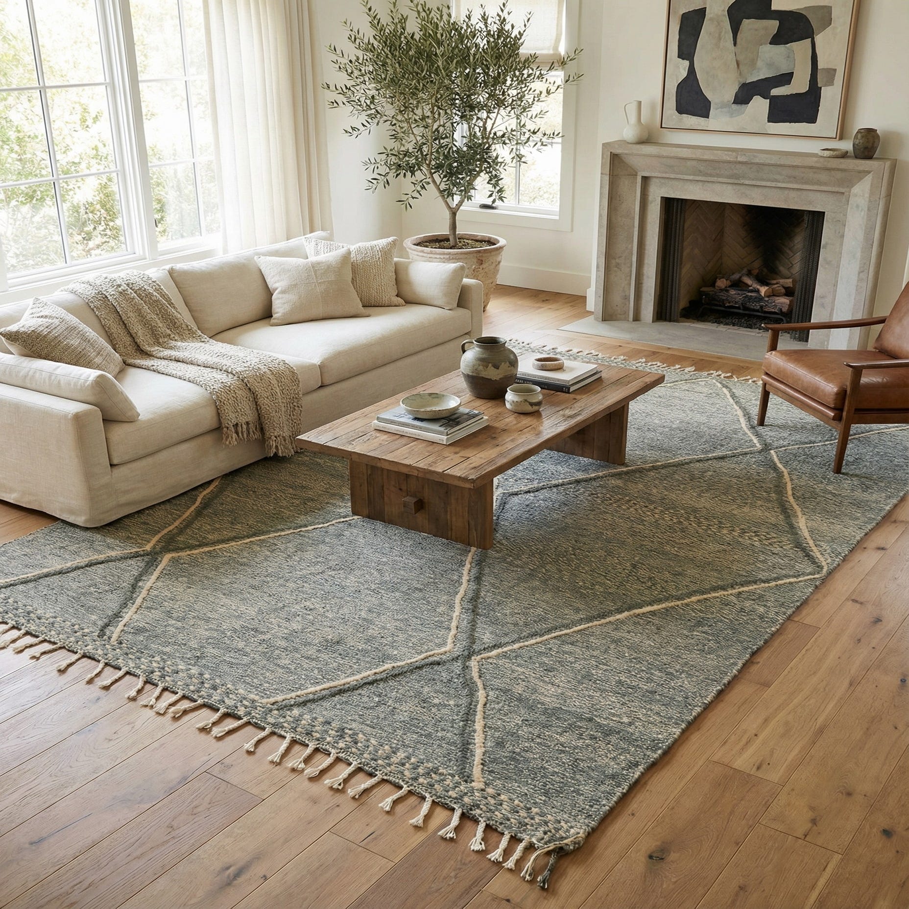 6' 11 x 11' 6 Hand Knotted Moroccan Wool Rug
