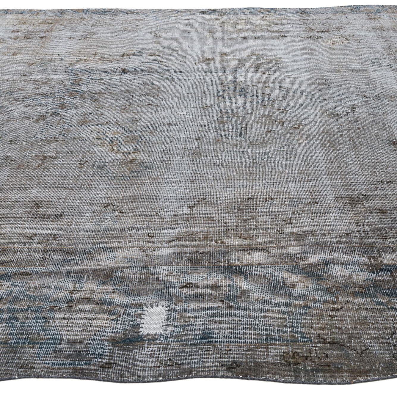 This Persian Ultra Vintage rug is an antique Persian Rug that has been washed, over-dyed, and then shaved down to a low pile. Look at the detail pictures to fully appreciate the uniqueness of this piece.