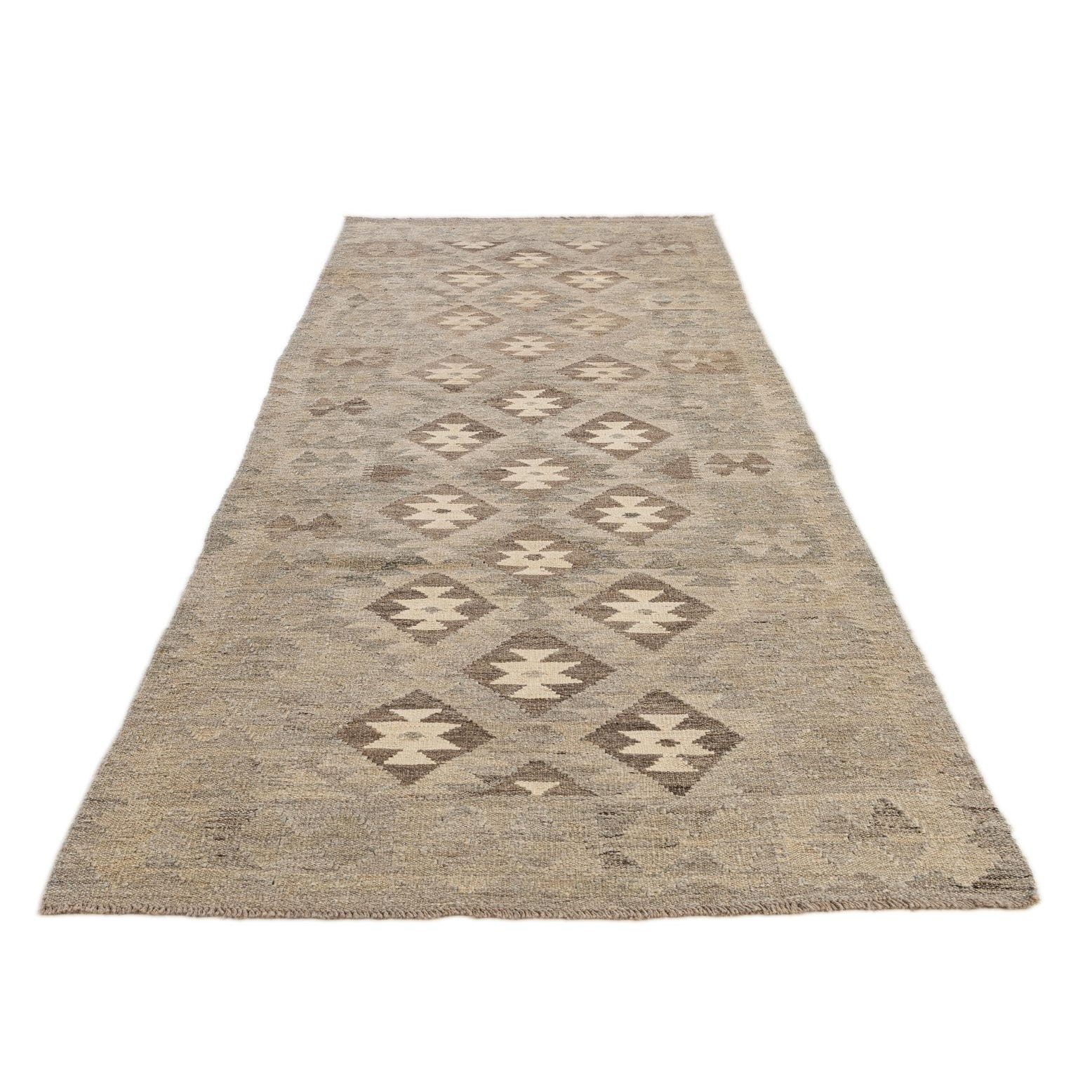 2' 11 x 9' 8 Hand Woven Kilim Maymana Wool Runner Rug