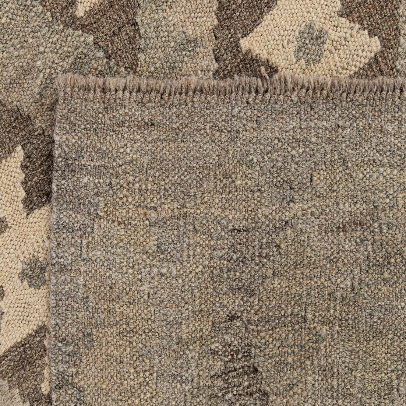 Primary color is Gray. Colors in this rug include: Gray, Brown, Cream.