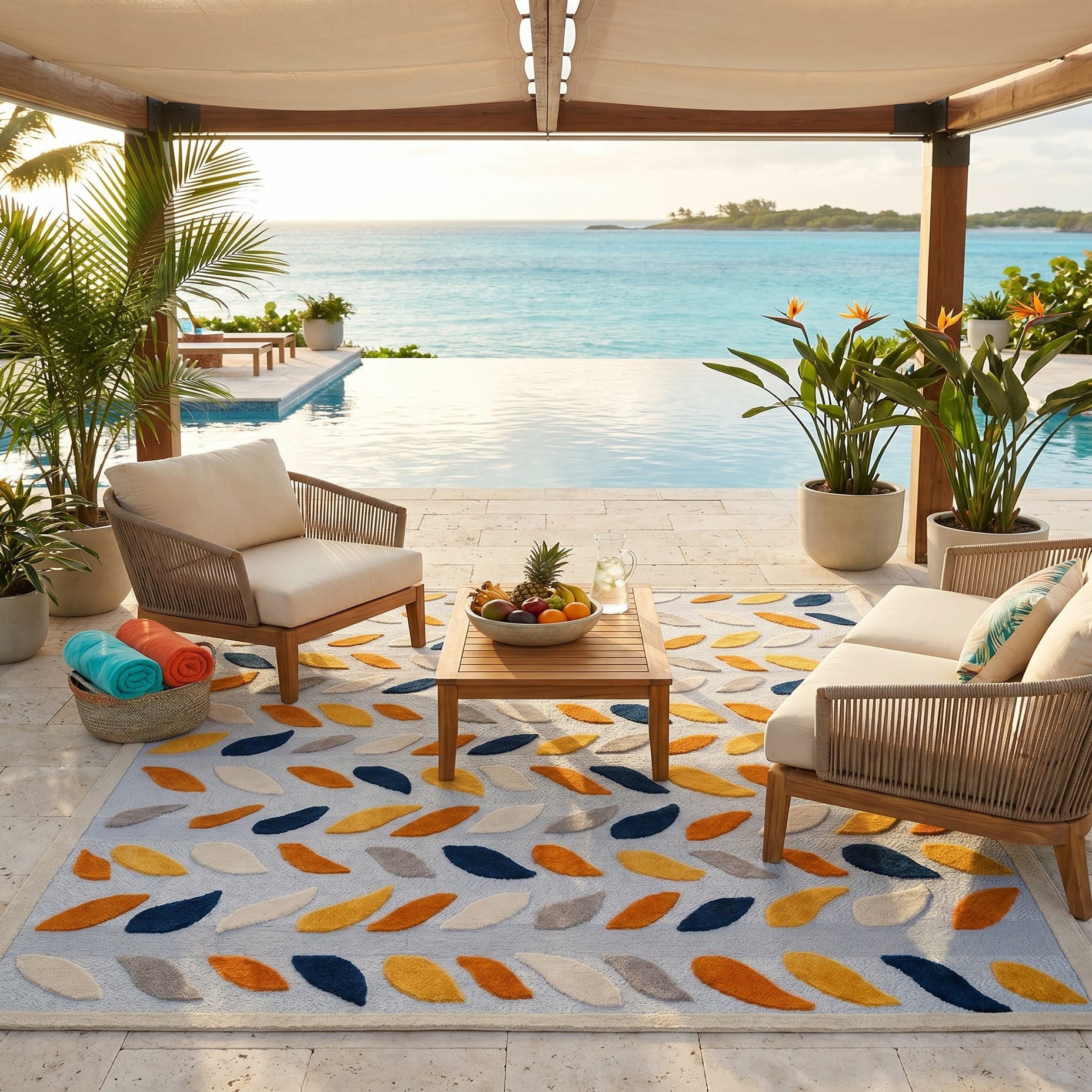 So far we love our rug and the pop of color it adds to our patio!