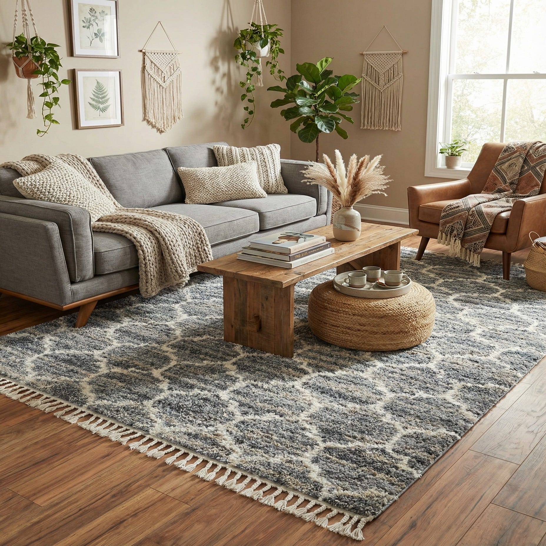 100% Polypropylene with Hand braided fringes