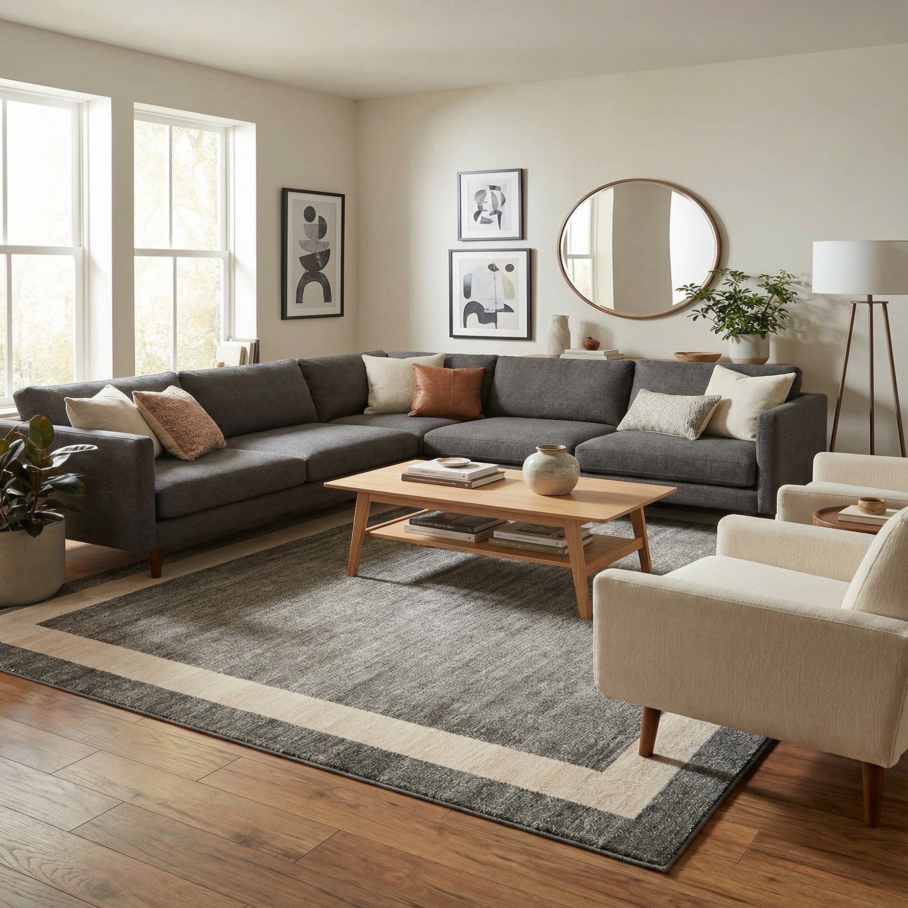 Primary color is Gray. Colors in this rug include: Gray, Ivory.