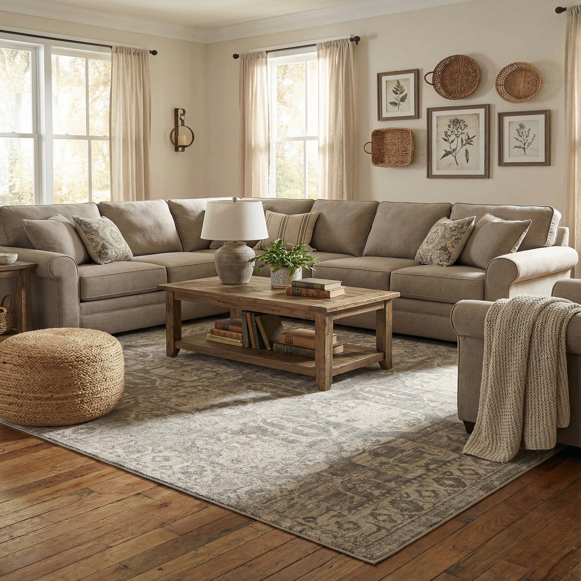 Primary color is Gray. Colors in this rug include: Gray, Ivory.