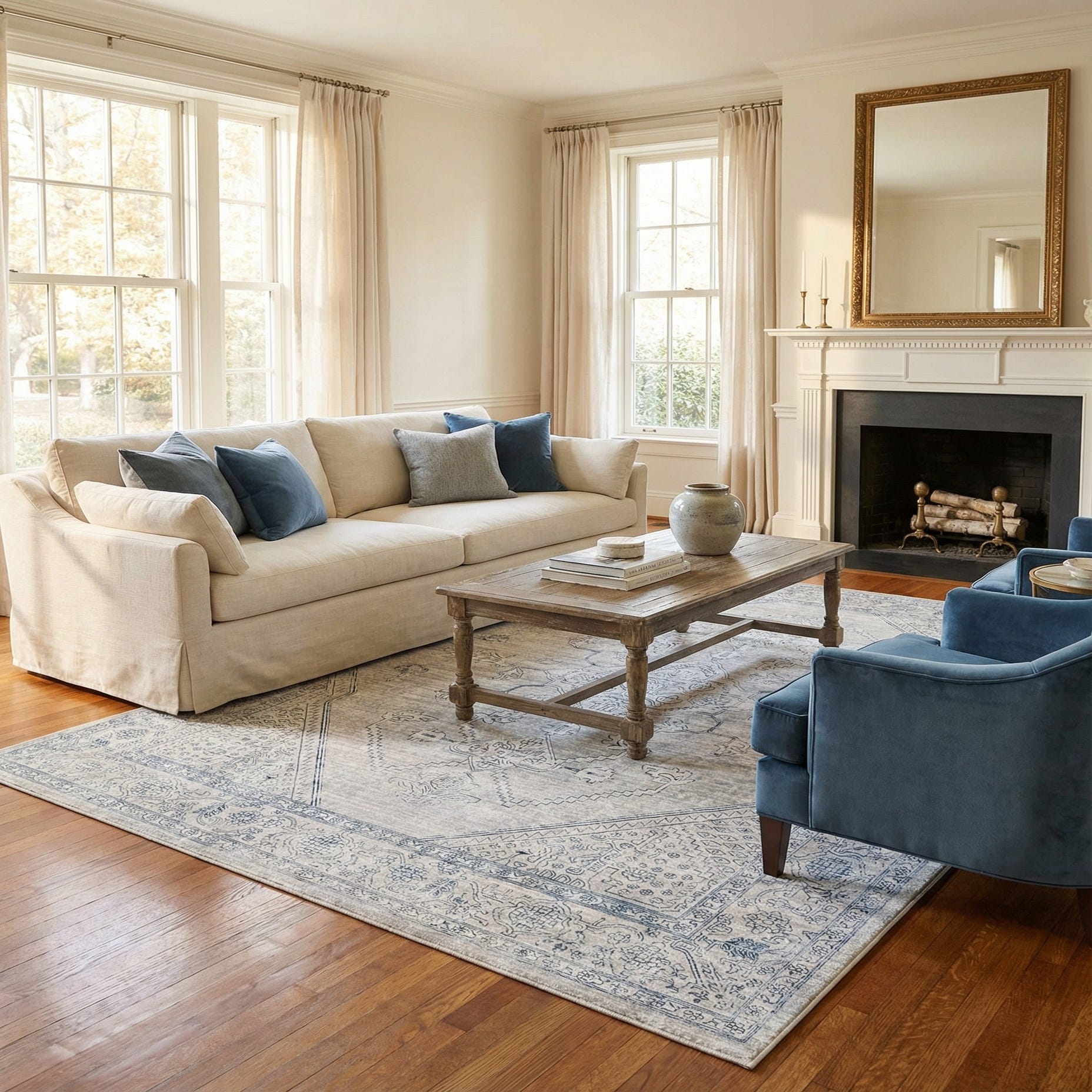 Primary color is Gray. Colors in this rug include: Gray, Ivory.