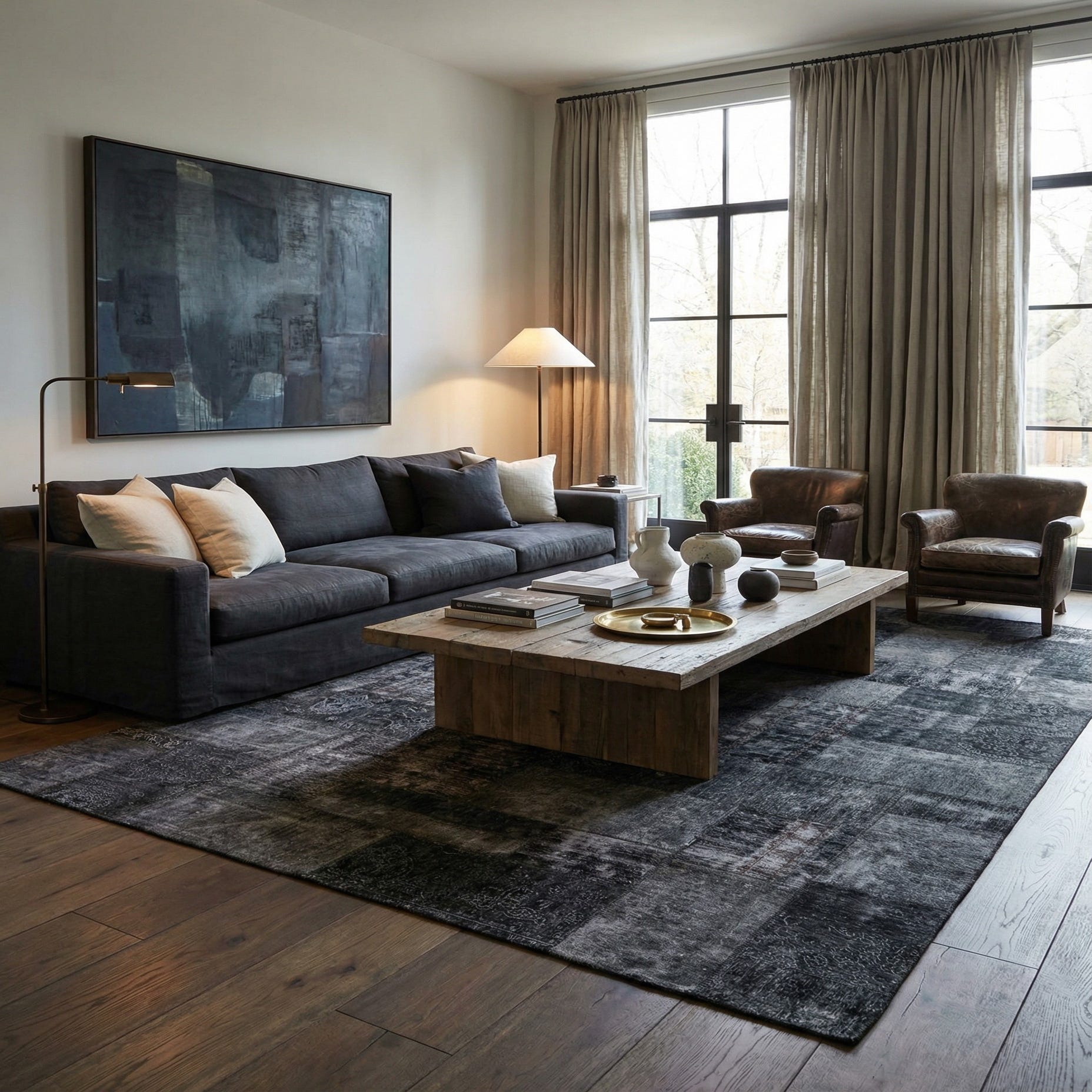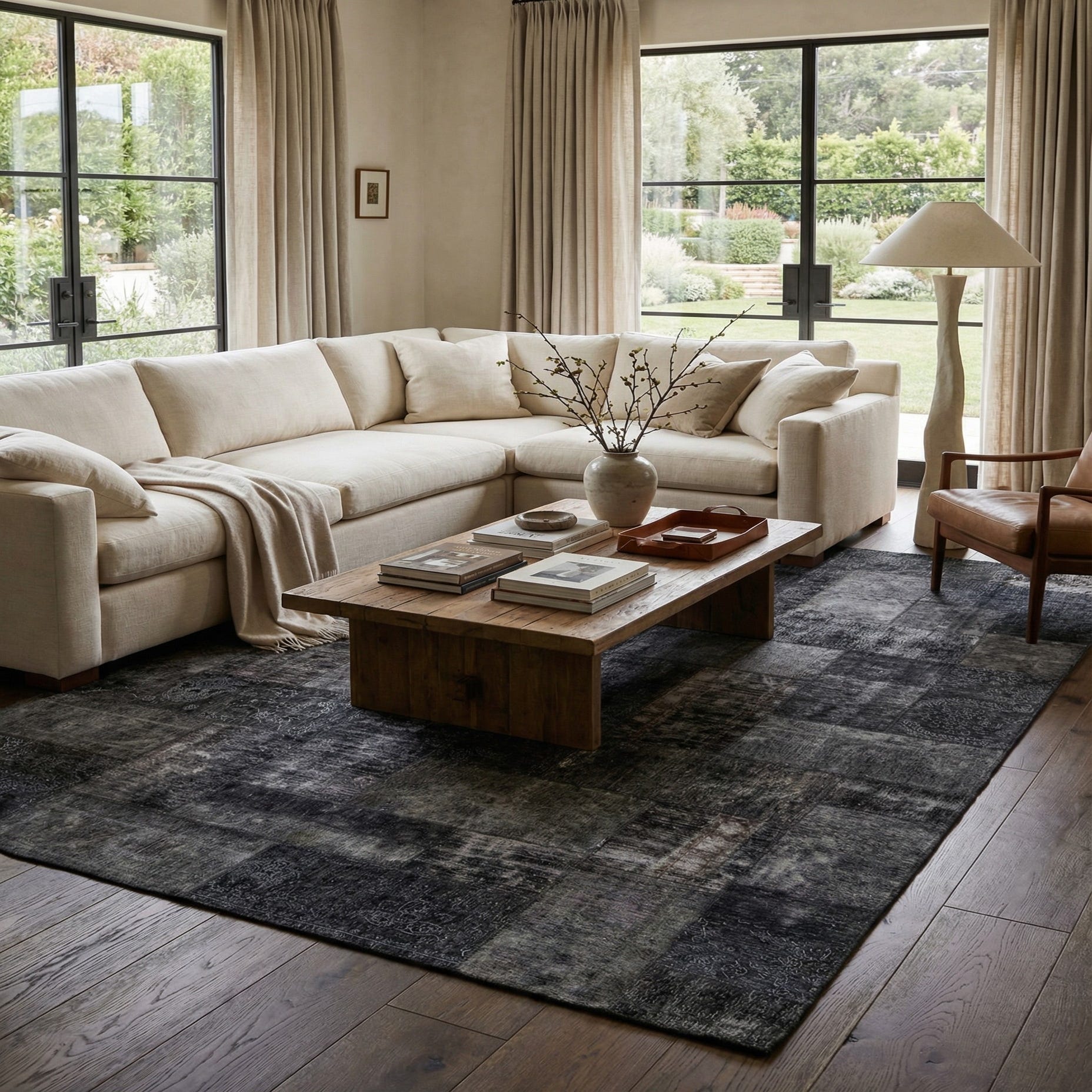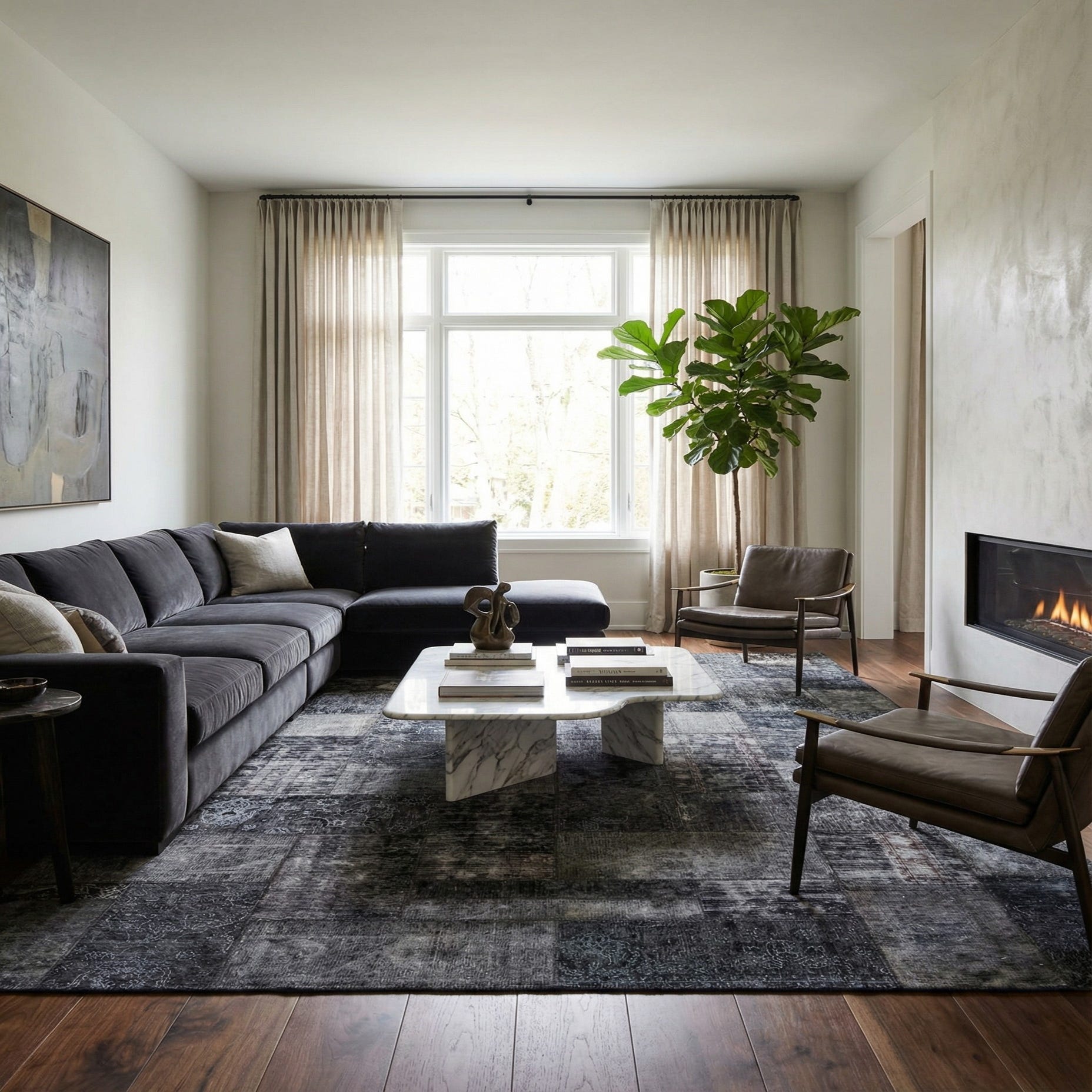 Primary color is Gray. Colors in this rug include: Gray, Black, Ivory.