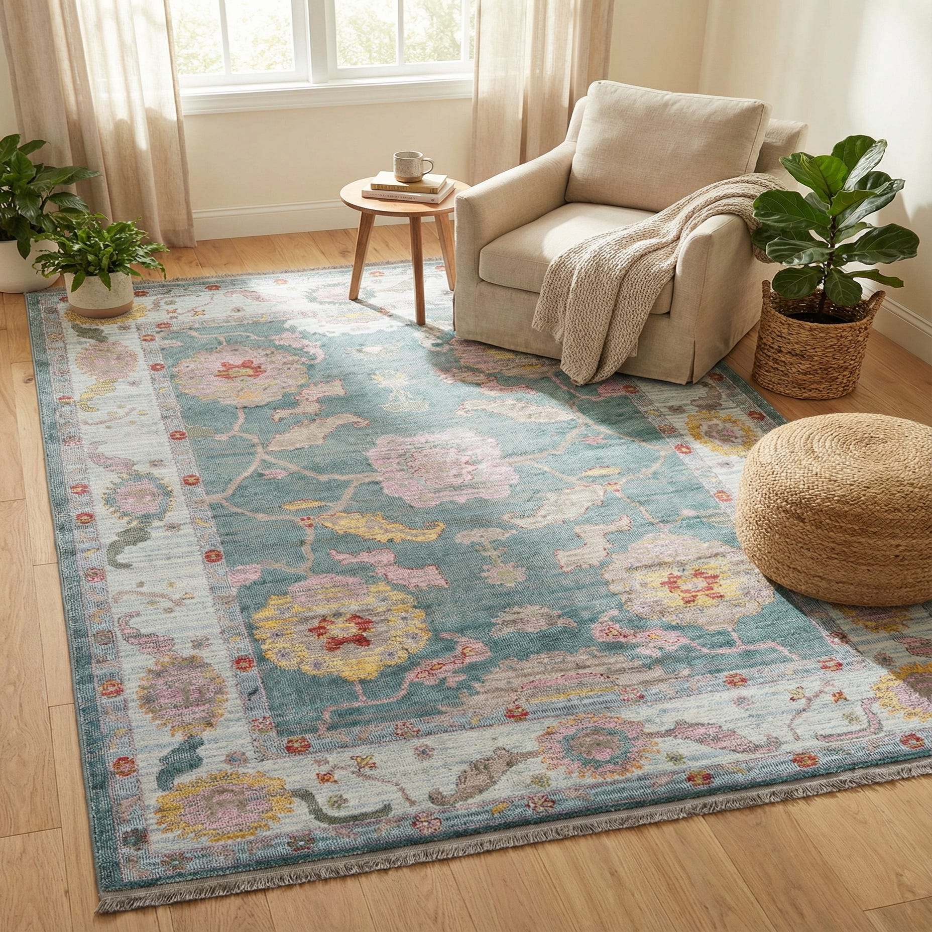 Primary color is Gray and Blue. Colors in this rug include: Gray and Blue, Beige, Blue, Ivory, Light Blue, Red, Teal, Yellow, Pink, Orange.