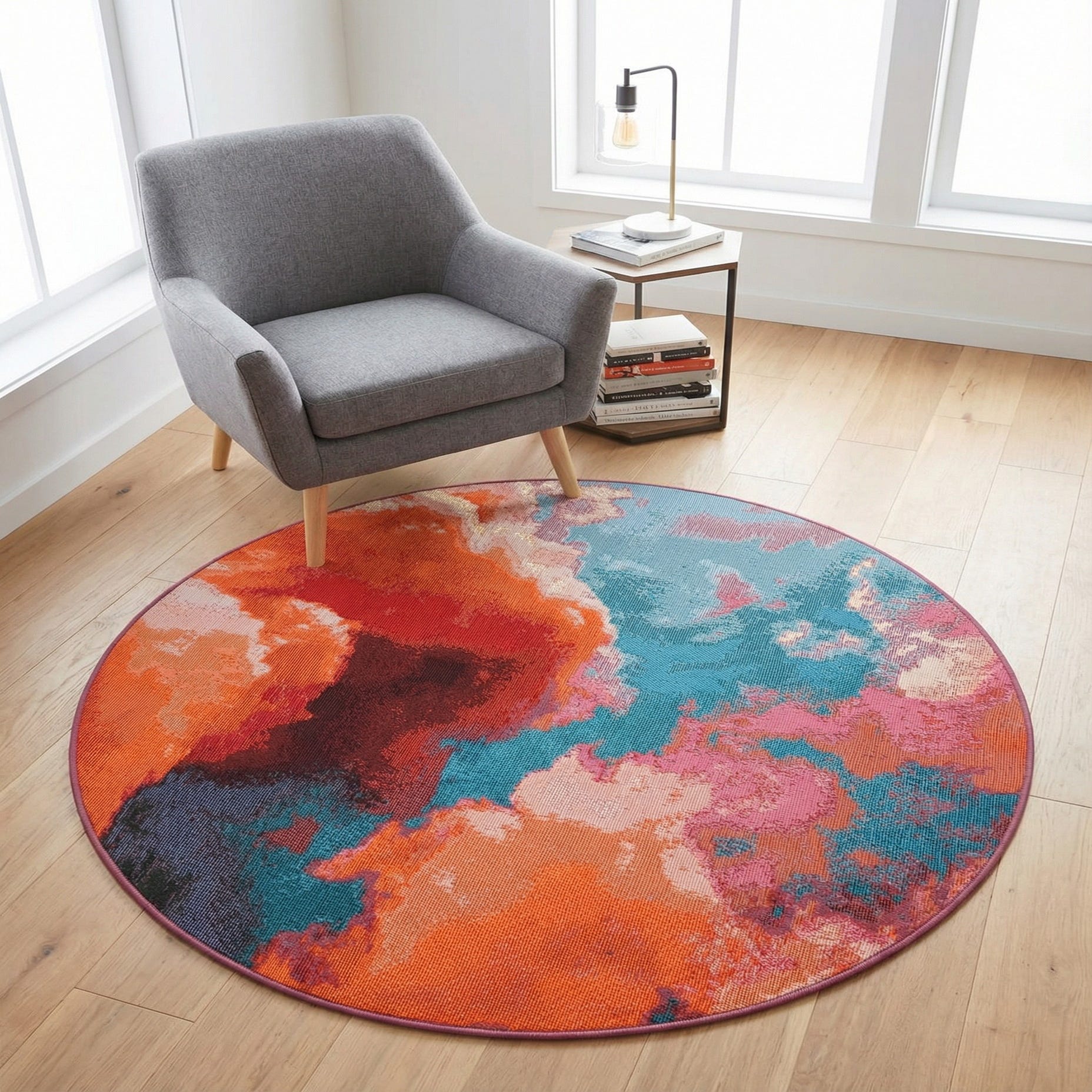 4' 1 x 4' 1 Washable Modern Indoor / Outdoor Round Rug