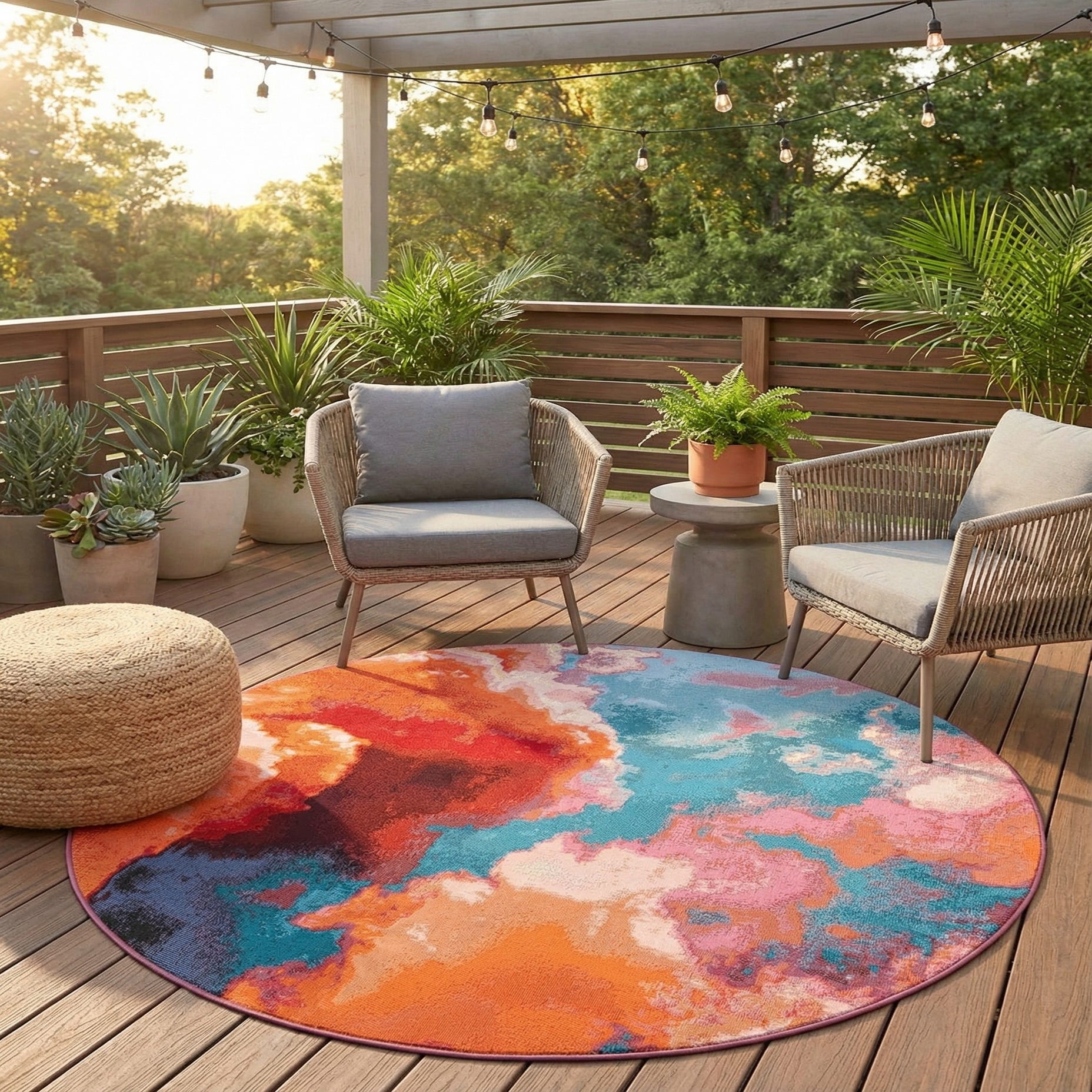 5' 3 x 5' 3 Washable Modern Indoor / Outdoor Round Rug
