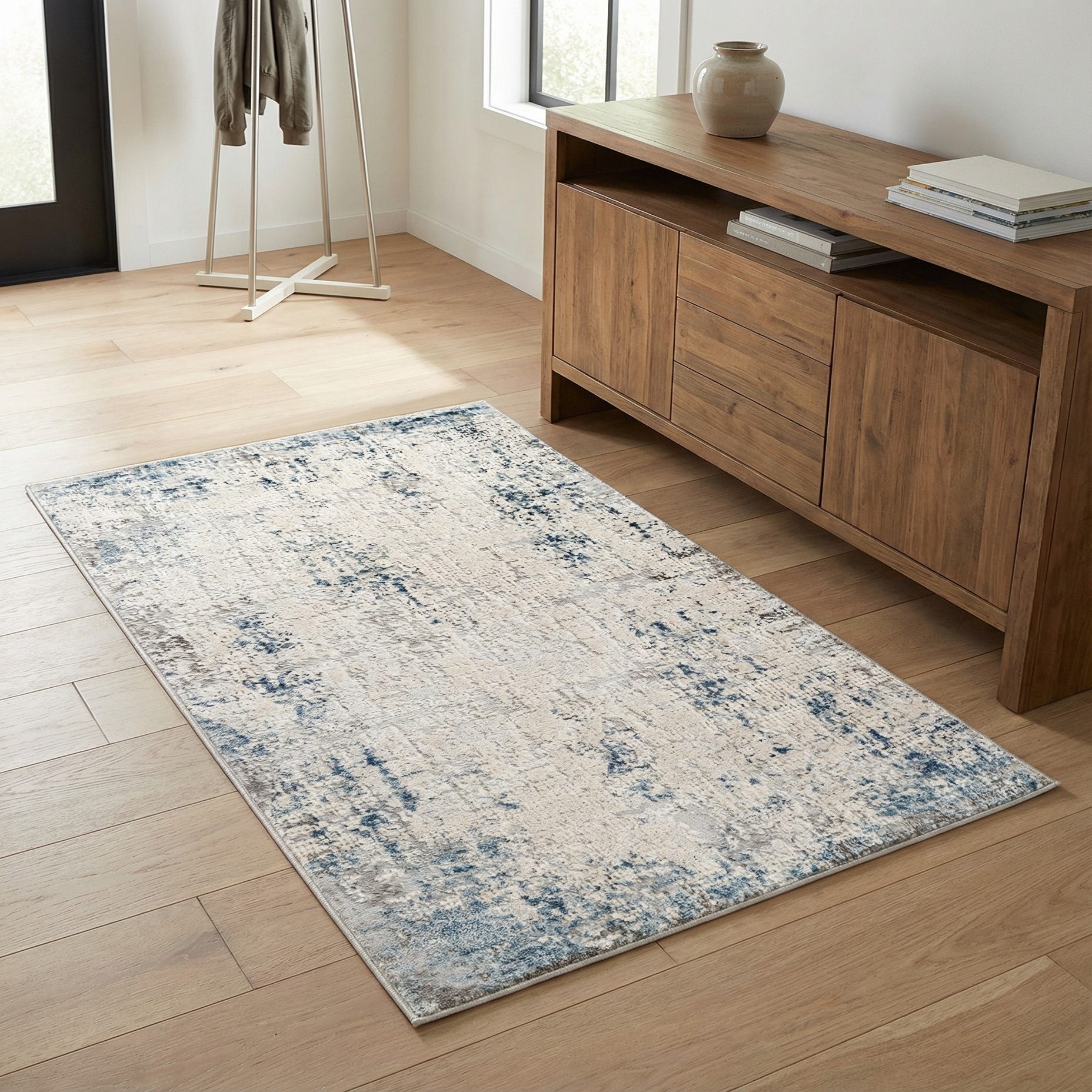 Primary color is Gray Blue. Colors in this rug include: Gray Blue, Ivory.