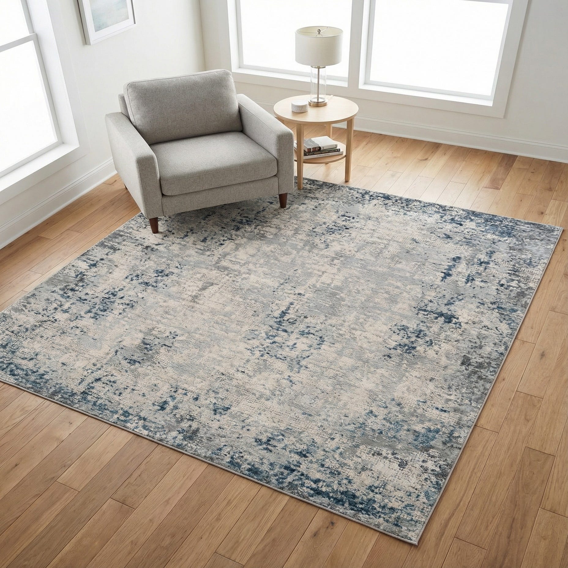 Primary color is Gray Blue. Colors in this rug include: Gray Blue, Ivory.