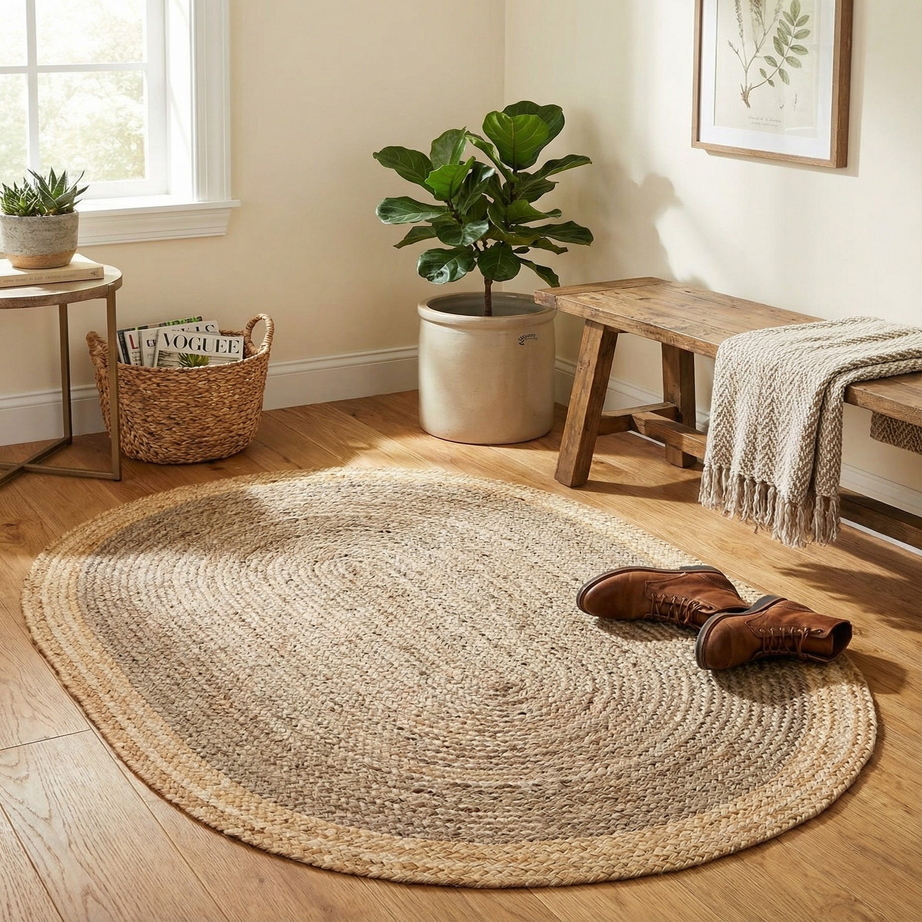 4' 1 x 6' 1 Hand Braided Jute Oval Rug