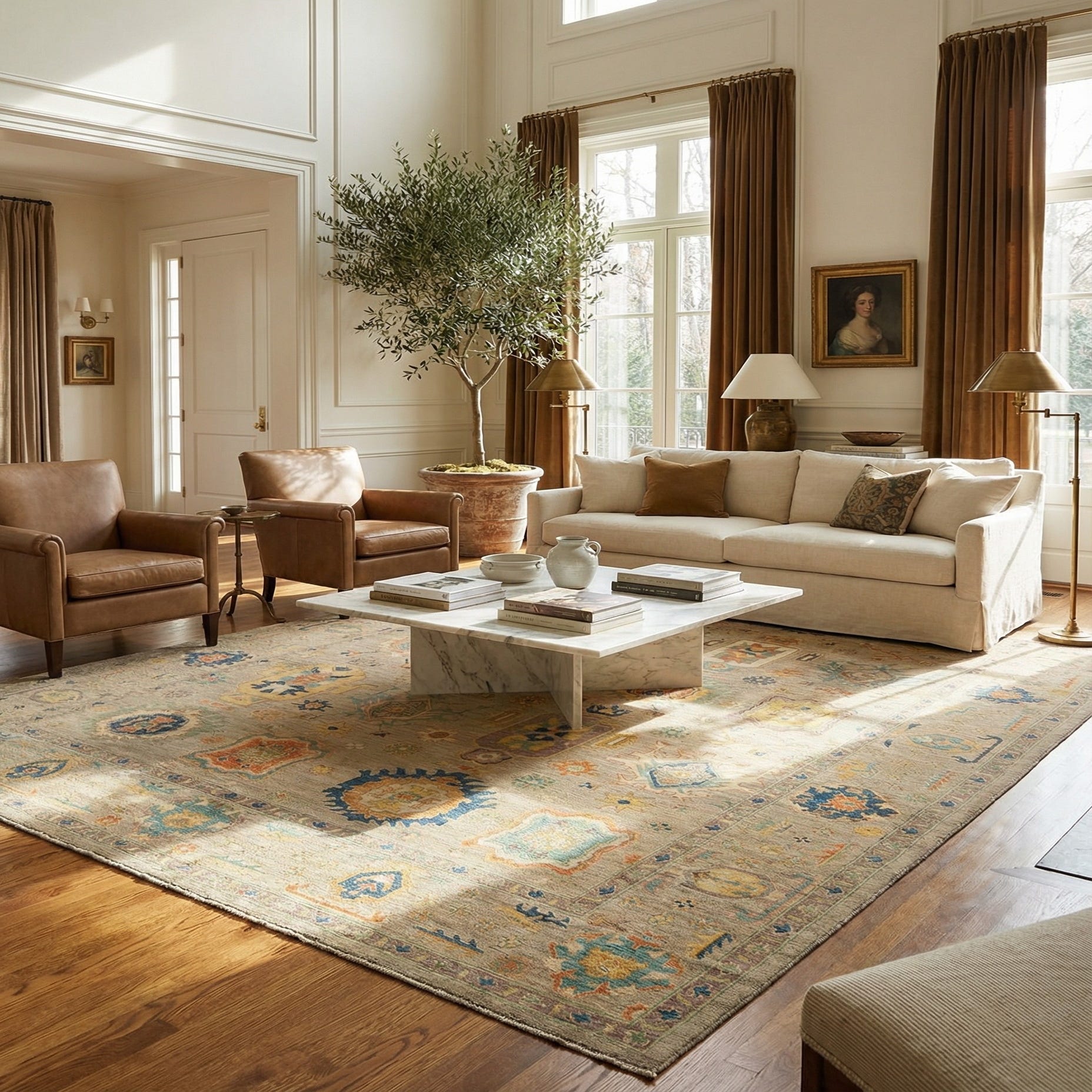 Primary image 8' 11 x 12'  Hand Knotted Oushak Rug