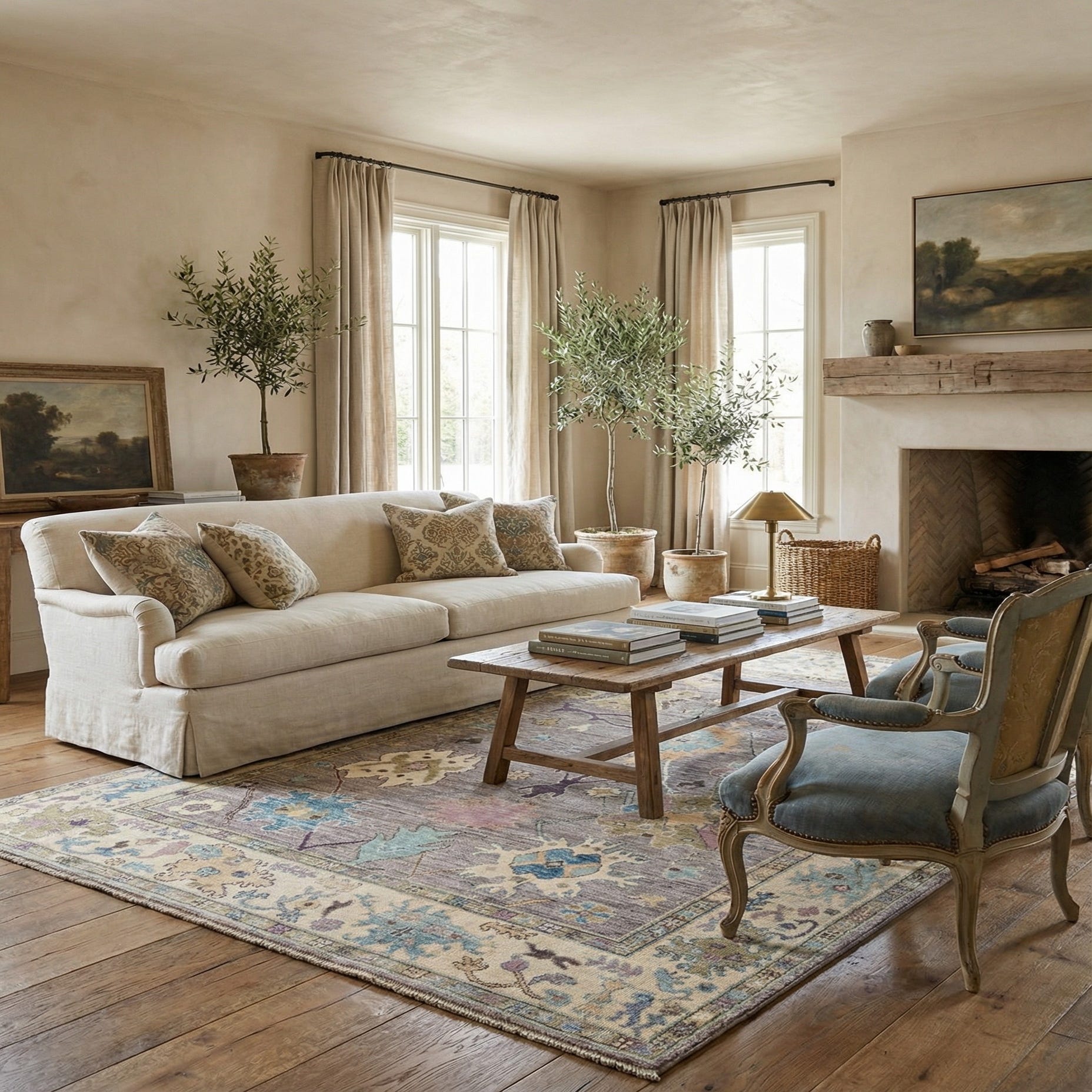 Primary image 6' 2 x 9'  Hand Knotted Oushak Rug