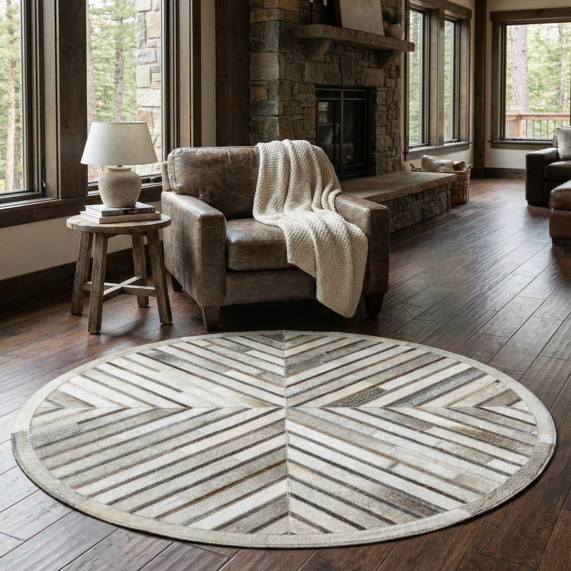 4' 1 x 4' 1 Cowhide Leather Round Rug