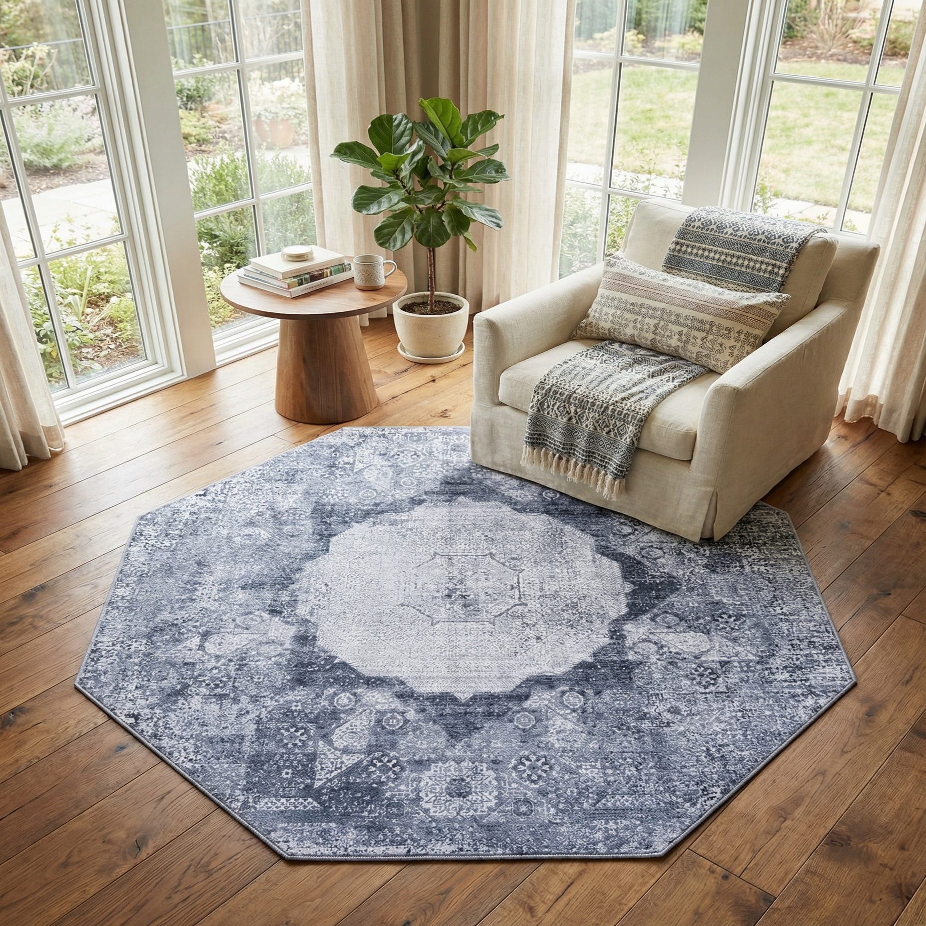 Primary image 5' x 5'  Washable Yara Octagon Rug