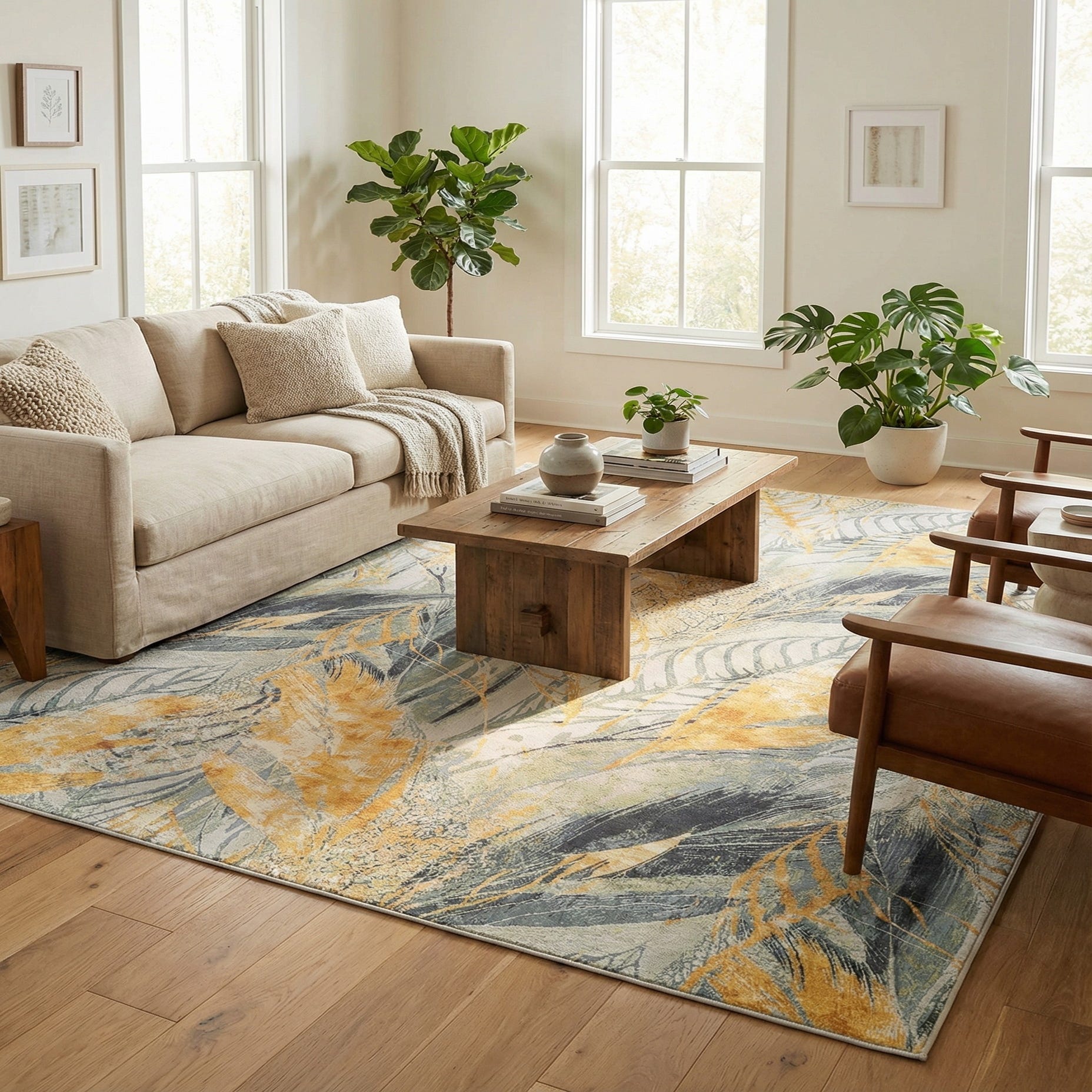 Primary image 10' x 14' 2  Washable Botanical Indoor / Outdoor Rug