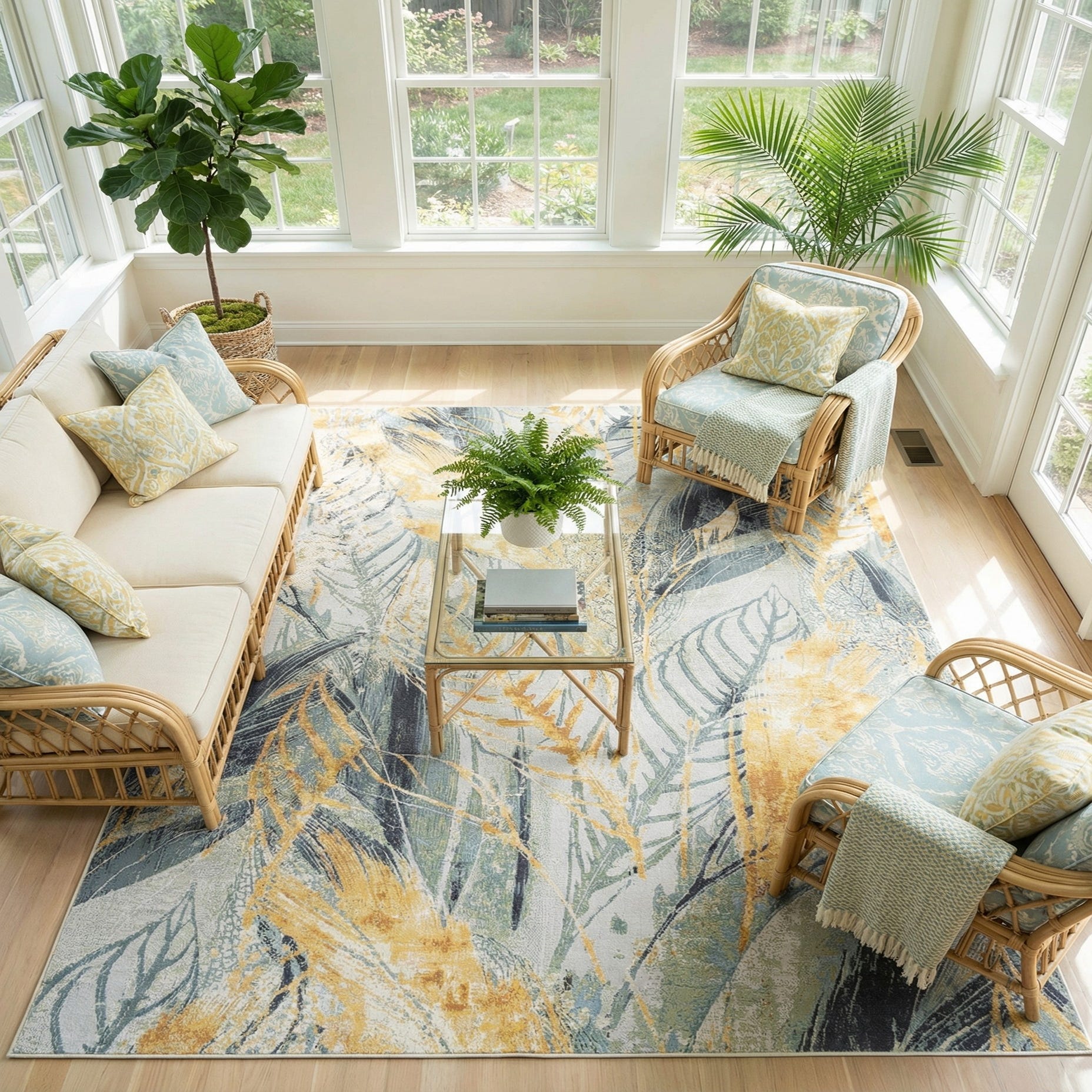 7' 10 x 10' Washable Botanical Indoor / Outdoor Rug