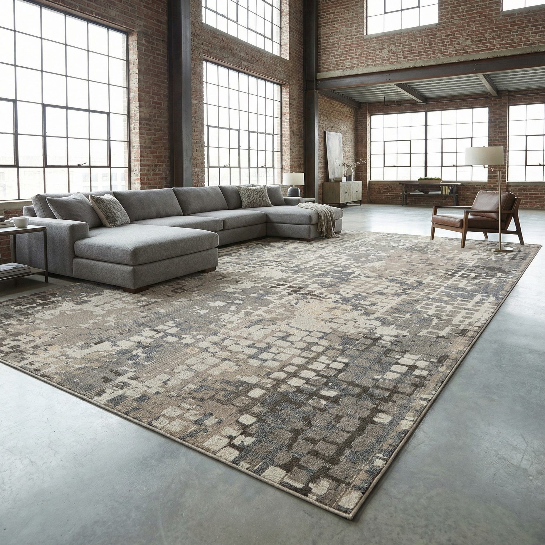 Primary color is Gray. Colors in this rug include: Gray, Beige, Brown.