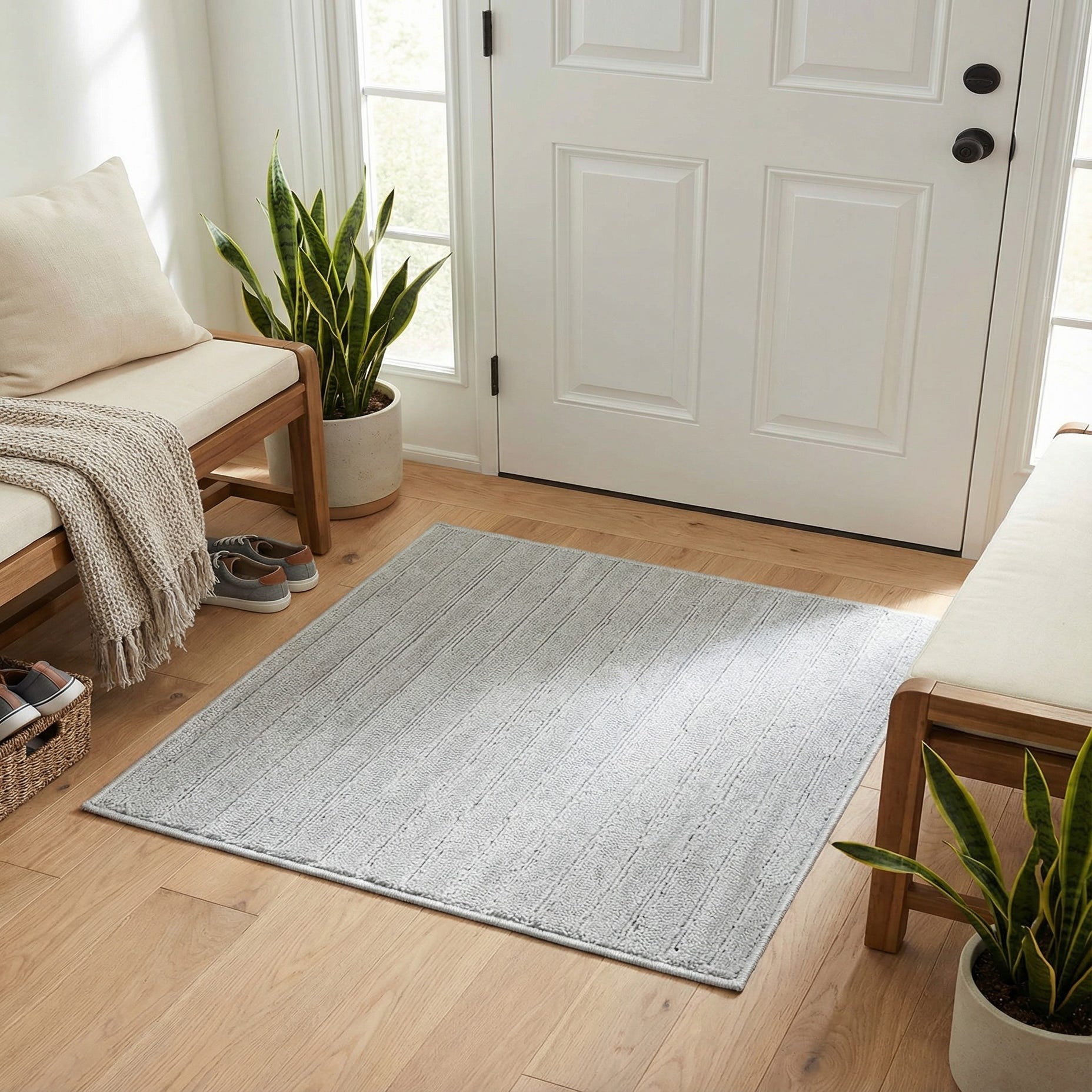 Primary color is Gray. Colors in this rug include: Gray, Ivory.
