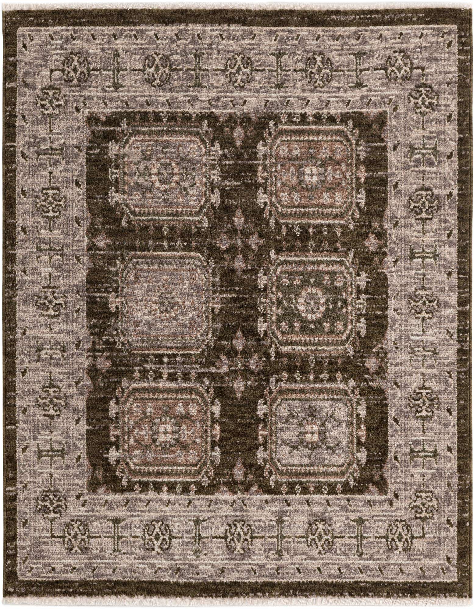 Primary color is Green. Colors in this rug include: Green, Beige, Brown, Gray, Ivory.