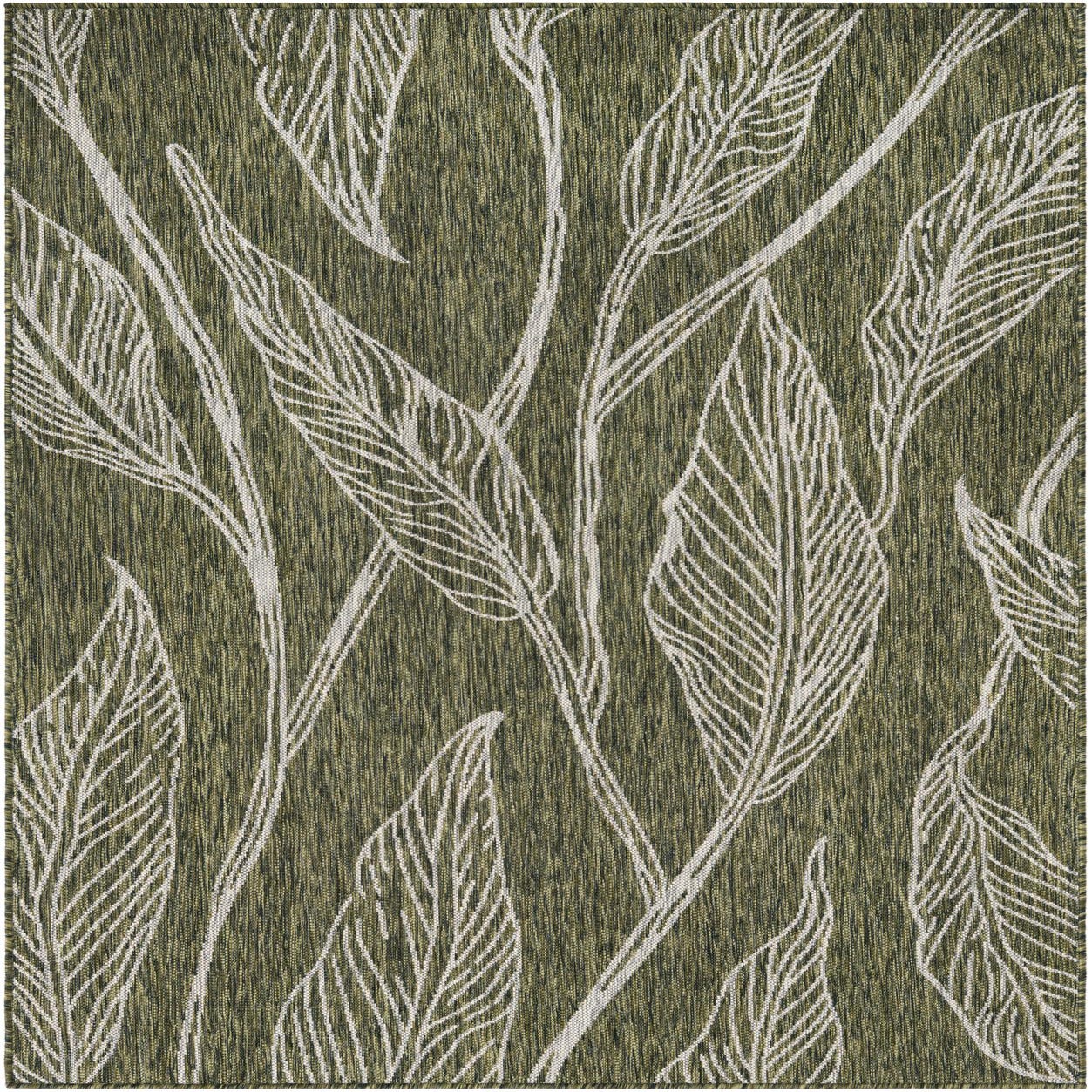 Detail image of Custom Green  Washable Botanical Indoor / Outdoor Rug
